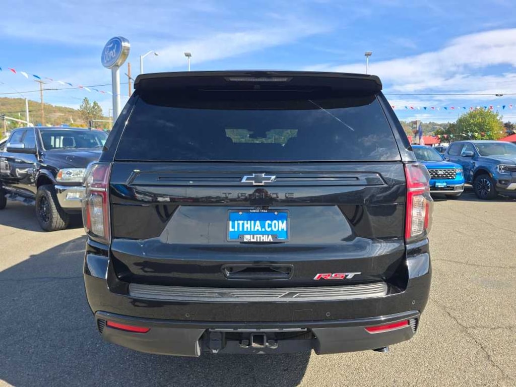 SUNROOF, POWER PANORAMIC, DUAL-PANE, TILT-SLIDING with express-open and close and power sunshade, LPO, BLACK ROOF RACK CROSS RAILS (dealer-installed), LPO, CARGO SECURITY SHADE (dealer-installed), AUDIO SYSTEM, CHEVROLET INFOTAINMENT 3 PREMIUM SYSTEM WITH GOOGLE BUILT-IN 10.2 diagonal HD color touchscreen, includes multi-touch display, AM/FM stereo, Bluetooth® streaming audio for music and most phones; featuring wireless Android Auto® and Apple CarPlay® capability for compatible phones, advanced voice recognition, in-vehicle apps, personalized profiles for infotainment and vehicle settings (STD), ENGINE, 5.3L ECOTEC3 V8 with Dynamic Fuel Management, Direct Injection and Variable Valve Timing, includes aluminum block construction (355 hp [265 kW] @ 5600 rpm, 383 lb-ft of torque [518 Nm] @ 4100 rpm) (STD), TRANSMISSION, 10-SPEED AUTOMATIC electronically controlled with overdrive, includes Traction Select System including tow/haul (Standard with (L84) 5.3L EcoTec3 V8 engine only or (L87) 6.2L EcoTec3 V8 engine only.) (STD). 2023 Chevrolet Tahoe with Black exterior and Jet Black/Victory Red interior features a 8 Cylinder Engine with 355 HP at 5600 RPM*. Non-Smoker vehicle