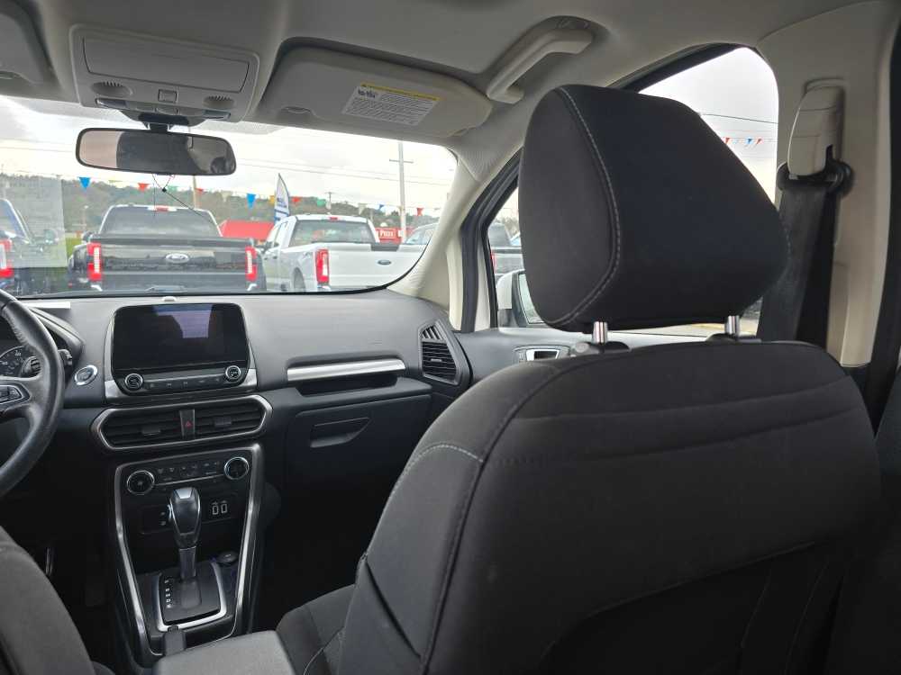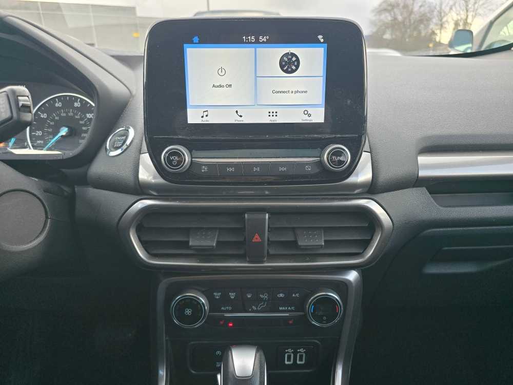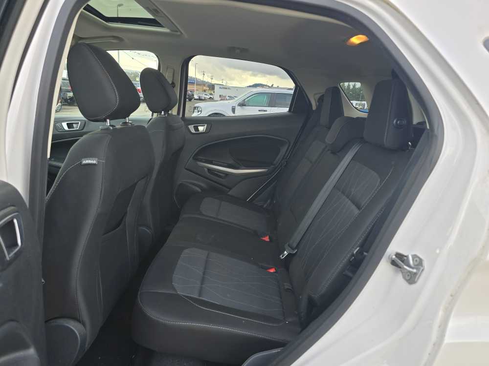 Sunroof, Heated Driver Seat, Back-Up Camera, Turbocharged, Satellite Radio, iPod/MP3 Input, Onboard Communications System, Aluminum Wheels, Keyless Start, Apple CarPlay®, Smart Device Integration, Heated Seats. MP3 Player, Keyless Entry, Privacy Glass, Child Safety Locks, Steering Wheel Controls. 2019 Ford EcoSport with White Platinum Metallic Tri-Coat exterior and Ebony Black interior features a 3 Cylinder Engine with 123 HP at 6000 RPM*. Non-Smoker vehicle