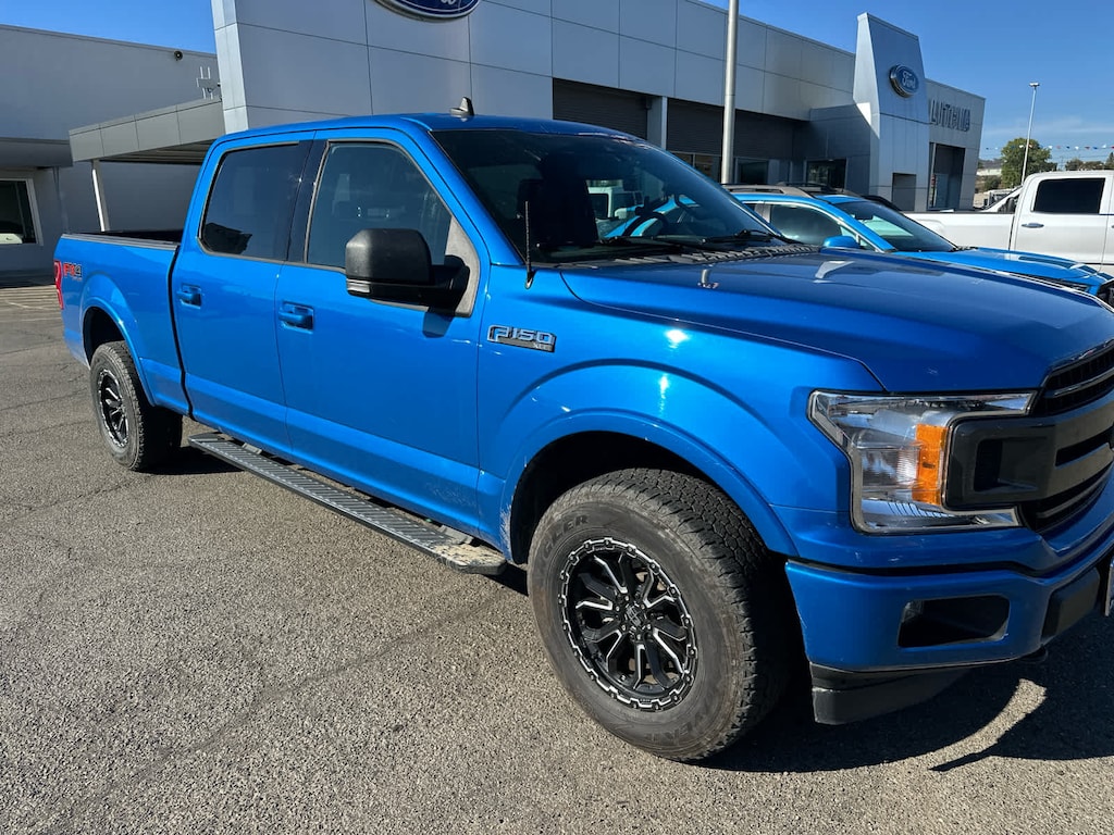 EQUIPMENT GROUP 302A LUXURY XLT Chrome Appearance Package, 2 chrome front tow hooks, Single-Tip Chrome Exhaust, Tires: P275/65R18 OWL Automatic Transmission, Chrome Door & Tailgate Handles w/Body-Color Bezel, bezel on side doors and black on tailgate, Wheels: 18 Chrome-Like PVD, 2-Bar Style Grille w/Chrome 2 Minor Bars, silver painted surround and black background mesh, Chrome Step Bars, Leather-Wrapped Steering Wheel, Remote Start System, 10-Way Power Driver & Passenger Seats, Rear Window Defroster, SiriusXM Radio, 7 speakers, Service is not available in Alaska and Hawaii, Subscriptions to all SiriusXM services are sold by SiriusXM after trial period, If you decide to continue service after your trial, the subscription plan you choose will automatically renew thereafter, XLT SPORT APPEARANCE PACKAGE body-color wheellip moldings and unique interior finish, Box Side Decals, Single-Tip Chrome Exhaust, Body-Color Door & Tailgate Handles, body-color bezel on side doors and black on tailgate, Wheels: 18 6-Spoke Machined-Aluminum, magnetic painted pockets, Tires: P275/65R18 OWL Automatic Transmission, Accent-Color Step Bars, Body-Color Front & Rear Bumpers, body-color front fascia, 2-Bar Style Grille w/2 Minor Bars Painted Dark, black surround and background mesh, TRAILER TOW PACKAGE Towing capability up to 11,300 lbs, tailgate LED, Engine Oil Cooler, Pro Trailer Backup Assist, Class IV Trailer Hitch Receiver, towing capability up to 6,000 lbs on 3.3L V6 PFDI engine (99B) and 2.7L EcoBoost engine (99P) or up to 7,000 lbs on 3.5L EcoBoost engine (994), 3.5L EcoBoost High Output engine (99G) and 5.0L V8 engine (995), smart trailer tow connector and 4-pin/7-pin wiring harness, Upgraded Front Stabilizer Bar, FX4 OFF-ROAD PACKAGE Off-Road Tuned Front Shock Absorbers, Skid Plates (Fleet), fuel tank, transfer case and front differential, 4x4 FX4 Off-Road Bodyside Decal, Hill Descent Control, Electronic Locking w/3.31 Axle Ratio, Tray Style Floor Liner, VOICE-ACTIVATED TOUCHSCREEN NAVIGATION pinch-to-zoom capability, SiriusXM Traffic and Travel Link, Note: SiriusXM Traffic and Travel Link includes a, SiriusXM Traffic and Travel Link service is not available in Alaska or Hawaii, SiriusXM audio and data services each require a subscription sold separately, or as a package, by Sirius XM Radio Inc, If you decide to continue service after your trail, the subscription plan you choose will automatically renew thereafter and you will be charged according to your chosen payment method at then-current rates, Fees and taxes apply, To cancel you must call SiriusXM at 1-866-635-2349, See SiriusXM customer agreement for complete terms at www.siriusxm.com, All fees and programming subject to change, Sirius, XM and all related, ENGINE: 3.5L V6 ECOBOOST auto start-stop technology, REVERSE SENSING SYSTEM, TRANSMISSION: ELECTRONIC 10-SPEED AUTOMATIC selectable drive modes: normal/tow-haul/snow-wet/EcoSelect/sport (STD). 2019 Ford F-150 with Velocity Blue Metallic exterior and Black interior features a V6 Cylinder Engine with 395 HP at 5750 RPM*.