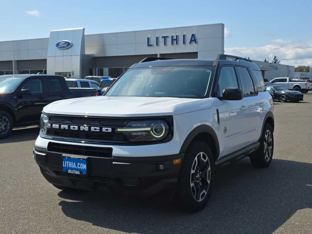 ENGINE: 1.5L ECOBOOST auto start-stop technology (STD). 2021 Ford Bronco Sport with Oxford White exterior and Navy Pier interior features a 3 Cylinder Engine with 181 HP at 6000 RPM*. Non-Smoker vehicle