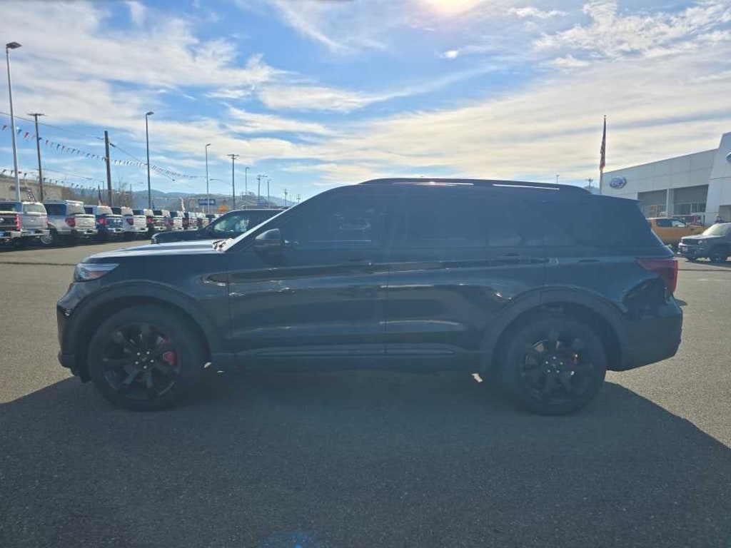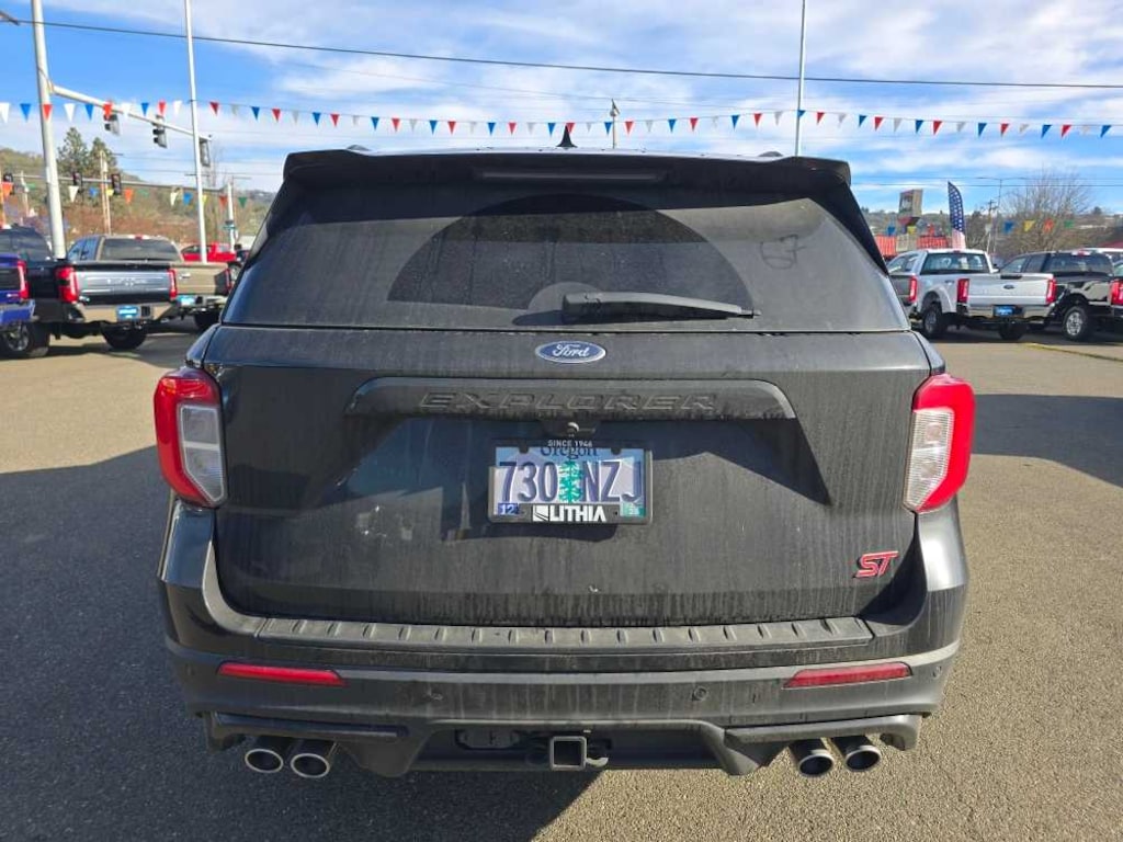 ST High Package, ambient lighting, Memory Drivers Seat, Power Tilt/Telescoping Steering Column, Front Rain-Sensing Wipers, Hands-Free Foot-Activated Liftgate, Reverse Brake Assist, 360-Degree Camera w/Split View, Wireless Charging Pad, 110V/150W AC Power Outlet, Replaces the powerpoint port on the rear side of the center floor console, Radio: B&O Sound System by Bang & Olufsen, MP3 capability, 12 speakers, subwoofer, HD Radio, speed-compensated volume and SiriusXM radio w/a 3 month prepaid subscription, Service is not available in Alaska and Hawaii, Sideview Mirrors w/Gloss Black Caps, power-folding w/Autofold, power and heated glass, LED turn signal indicators, ST projection lamps, drivers side auto-dimming and driver and passenger side memory, Ford Co-Pilot360 Assist+, Speed Sign, remote control front windows (opens front windows from outside of the vehicle via the key fob), (STD), HANDS-FREE LIFTGATE DELETE. 2022 Ford Explorer with Agate Black exterior and Ebony interior features a V6 Cylinder Engine with 400 HP at 5500 RPM*. Non-Smoker vehicle