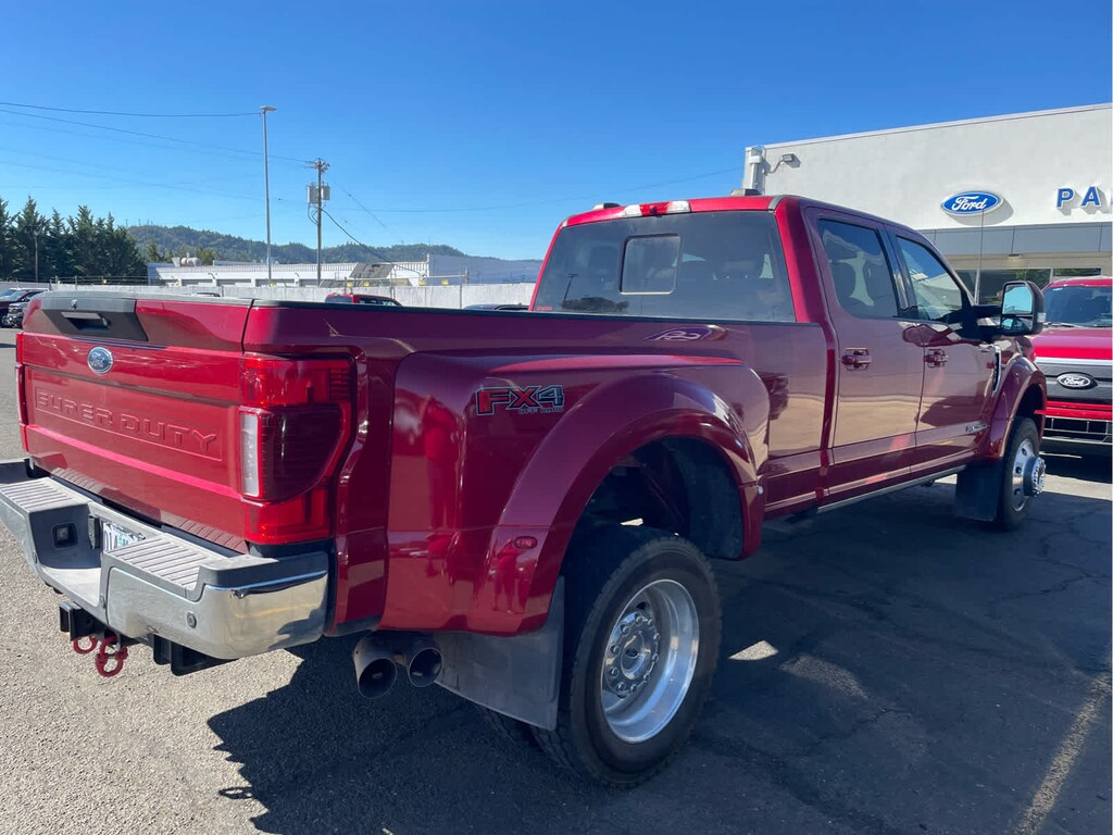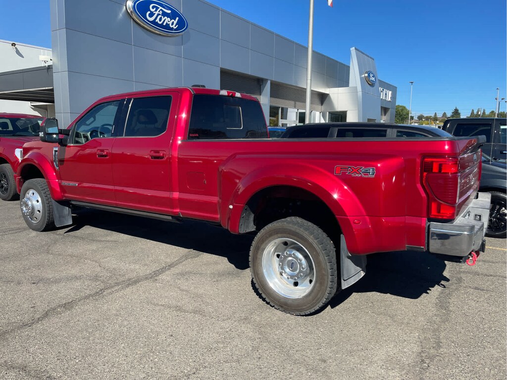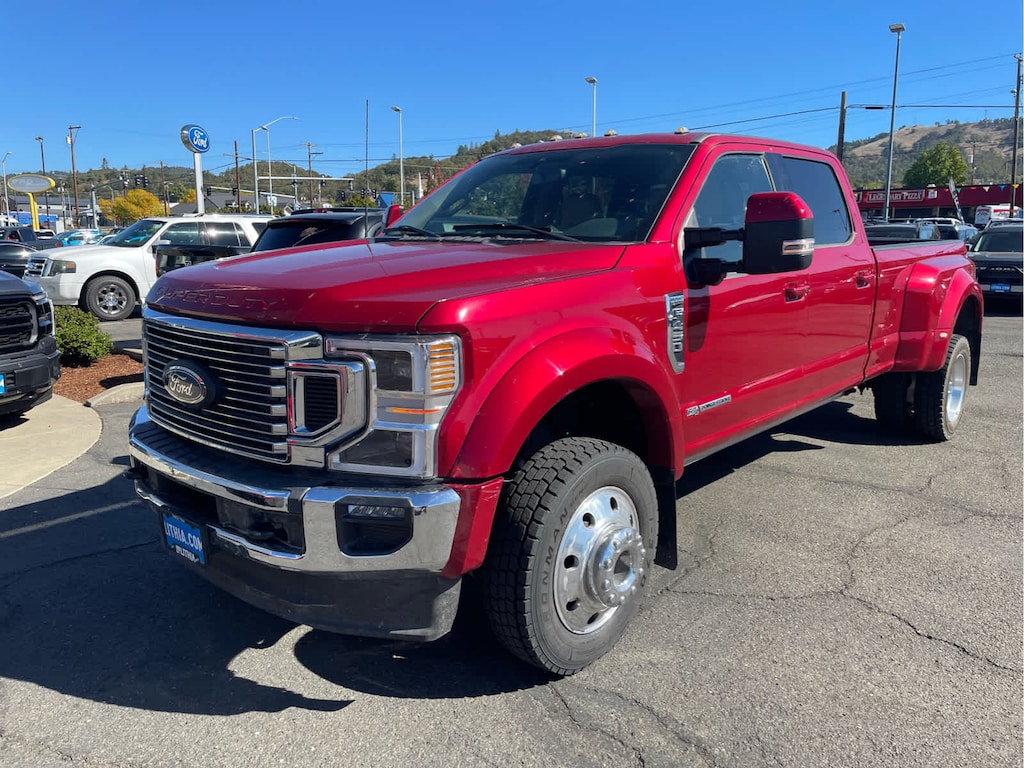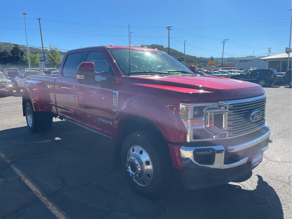 LARIAT ULTIMATE PACKAGE Power Heated/Ventilated Driver Seat w/Memory, PowerScope Trailer Tow Mirrors w/Memory, EASY ENTRY®/Exit Memory Drivers Seat Feature, Tailgate Step & Handle, LED Box Lighting, LED Center High-Mounted Stop Lamp (CHMSL), Intelligent Access w/Push-Button Start, Power Heated/Ventilated Passenger Seat, Remote Start System, Power-Adjustable Pedals w/Memory, Ambient Lighting - Fixed Color, Power Telescoping/Tilt Steering Wheel/Column, memory and audio controls, Remote Tailgate Release, PRO TRAILER BACKUP ASSIST Ultimate Trailer Tow Camera System, rear view camera, 360 degree camera system, rear CHMSL camera, trailer reverse guidance and LED center high-mounted stop lamp, Lane Departure Warning, 32.5K 5TH WHEEL HITCH KIT (PRE-INSTALLED), QUAD BEAM LED HEADLAMPS & LED TAILLAMPS LED fog lamps and LED Center High-Mounted Stop Lamp (CHMSL), POWER-DEPLOYABLE RUNNING BOARDS, ADAPTIVE CRUISE CONTROL & COLLISION WARNING brake support, HEATED REAR SEATS, RAIN-SENSING WINDSHIELD WIPERS Heated Steering Wheel, UNIVERSAL GARAGE DOOR OPENER (UGDO), TRANSMISSION: TORQSHIFT 10-SPEED AUTOMATIC SelectShift and selectable drive modes: normal, tow/haul, eco, deep sand/snow and slippery (STD), ENGINE: 6.7L 4V OHV POWER STROKE V8 TURBO DIESEL B20 manual push-button engine-exhaust braking and intelligent oil-life monitor (STD). 2022 Ford Super Duty F-450 Pickup with Rapid Red Metallic Tinted Clearcoat exterior and Baja interior features a 8 Cylinder Engine with 475 HP at 2600 RPM*. Non-Smoker vehicle