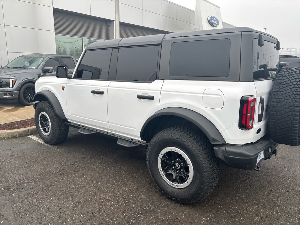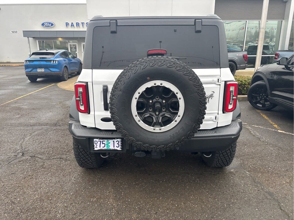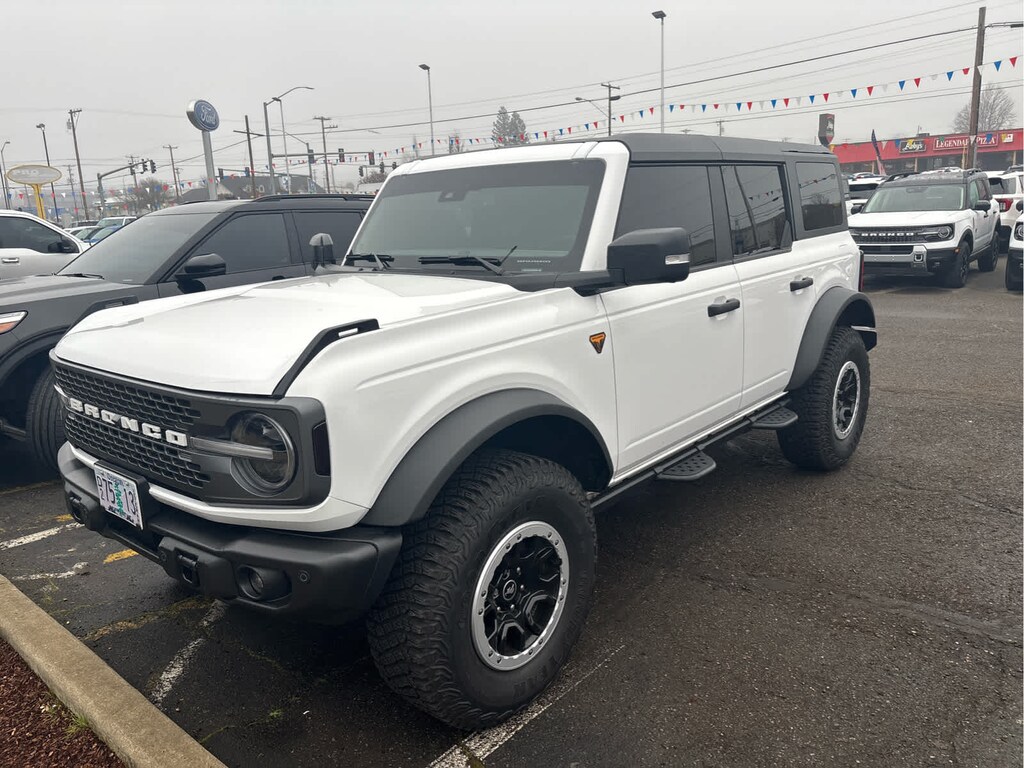 EQUIPMENT GROUP 334A LUX PACKAGE Rear Parking Sensors, Power Outlet - Back Side of Center Floor Console, Auto-Dimming Interior Rearview Mirror, Dr & Pass Illuminated Sliding Visor Vanity Mirrors, Evasive Steering Assist, Heated Steering Wheel, Additional Sound Deadening, Information on Demand Panel, Wireless Charging Pad, Dual-Zone Electronic Automatic Temperature Control, air conditioning, Ford Co-Pilot360, Enables compatibility w/FordPass performance app w/off-road navigation, Auto High-Beam Headlamps, Pre-Collision Assist w/Automatic Emergency Braking, pedestrian detection, forward collision warning and dynamic brake support, Blind Spot Information System (BLIS), Cross-Traffic Alert, Rear View Camera, backup assist grid lines, Lane-Keeping System, Lane-Keeping Alert, Lane-Keeping Aid, SASQUATCH PACKAGE Wheels: 17 Black High Gloss-Painted Aluminum, warm alloy beauty ring and beadlock capable wheels, High Clearance Fender Flares, High Clearance Suspension, 4.7 Final Drive Ratio, Tires: LT315/70R17 Mud-Terrain, Position-Sensitive Bilstein Shock Absorbers, BLACK ONYX, LEATHER-TRIMMED/VINYL BUCKET SEATS 10-way power driver seat, 8-way front passenger seat, second row armrest w/2 beverage holders and front driver/passenger seat back MOLLE strap system, Carpet flooring replaces the standard rubberized flooring, CARBONIZED GRAY MOLDED-IN-COLOR HARD TOP Rear-Window Defroster & Washer, Hard Top Sound Deadening Headliner, Front Row Top Panels Storage Bag, For on-vehicle storage, ENGINE: 2.7L ECOBOOST V6 electric brake boost, GVWR: 6,180 lbs, TOWING CAPABILITY, FRONT & REAR FLOOR LINERS W/O CARPET FLOOR MATS Custom accessory, pre-installed, Deletes standard carpet front and rear floor mats, TRANSMISSION: 10-SPEED AUTOMATIC 4.46 Axle Ratio. 2023 Ford Bronco with Oxford White exterior and Black Onyx interior features a V6 Cylinder Engine with 315 HP at 5500 RPM*. Non-Smoker vehicle