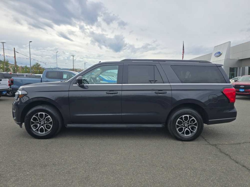 EQUIPMENT GROUP 202A HIGH PACKAGE Heated/Ventilated Front Seats, 110V/150W AC Power Outlet, Power-Adjustable Pedals w/Memory, Bright Chrome Plated Accent Platform Running Boards, Power Tilt/Telescopic Steering Wheel w/Memory, Ambient Lighting, Remote Start, Advanced Security Pack, SecuriLock Passive Anti-Theft System (PATS) and inclination/intrusion sensors, Wireless Charging Pad, Located in media hub, Power Liftgate, 2nd Row Power-Folding Captains Chairs, armrests and tip-and-slide, Accent Color Painted Rear Bumper, Heated Steering Wheel, Power-Folding Sideview Mirrors w/Autofold, power and heated glass, turn signal indicators, security approach lamps, driver/passenger side memory, drivers side auto-dimming and body-color caps, 3rd Row Vinyl Power-Folding Head Restraints, power recline, 2ND ROW POWER-FOLDING 40/20/40 ACTIVEX BENCH SEAT 8-passenger seating, tip-and-slide feature, TRANSMISSION: 10-SPEED AUTOMATIC W/SELECTSHIFT (STD). 2023 Ford Expedition Max with Dark Matter Metallic exterior and Black Onyx interior features a V6 Cylinder Engine with 380 HP at 5000 RPM*. Non-Smoker vehicle