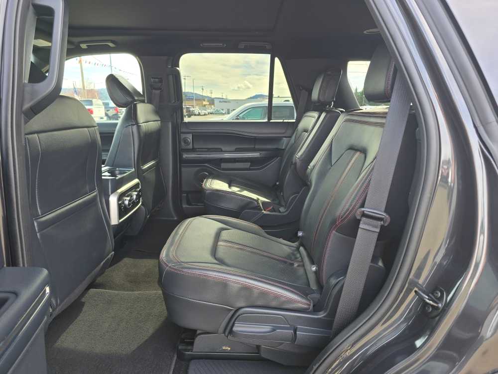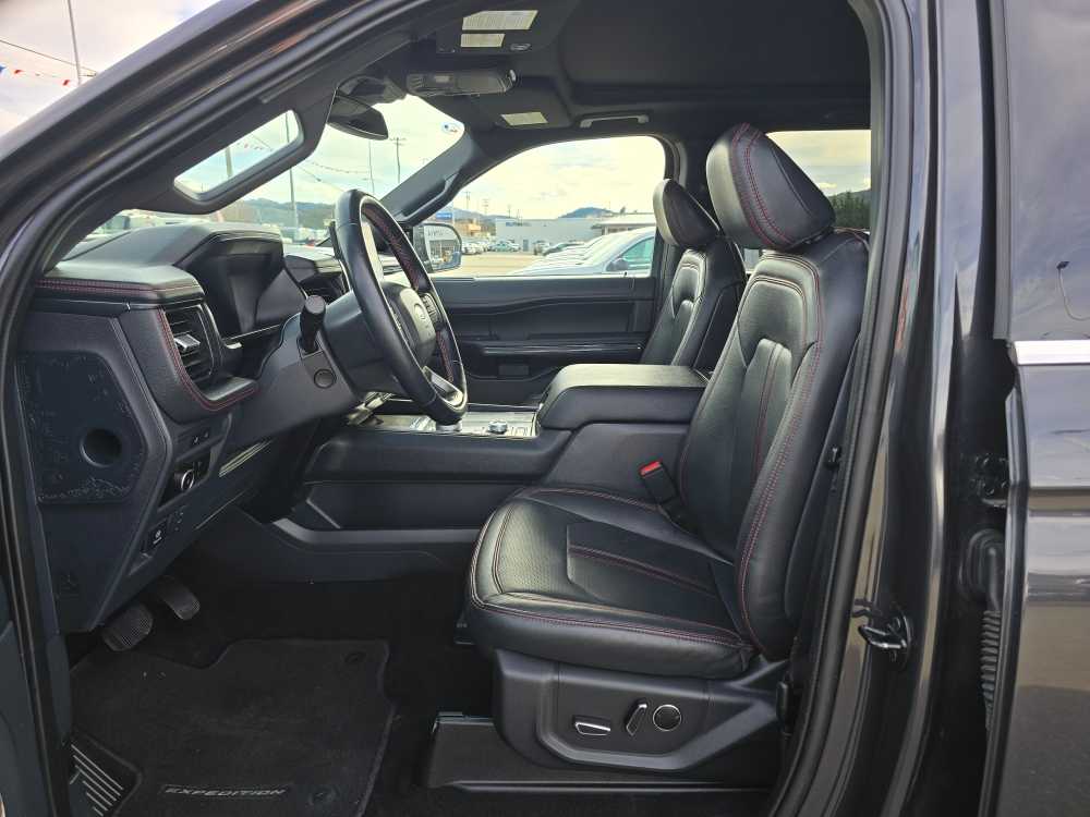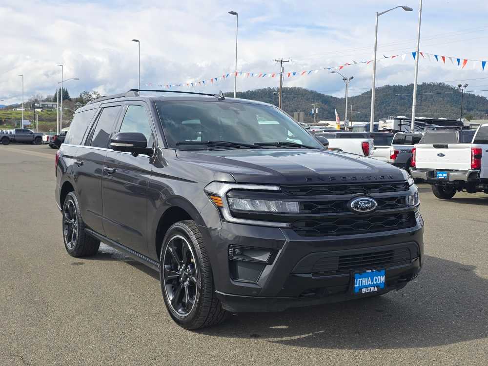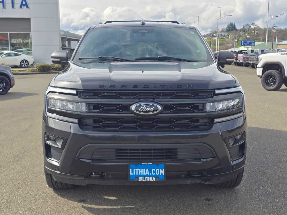 EQUIPMENT GROUP 303A STEALTH PACKAGE 1st & 2nd Row Floor Mats w/Logo, Ford Co-Pilot360 Assist 2.0, Connected Built-In Navigation, 3 years of service, pinch-to-zoom capability, live traffic, predictive destinations and route guidance, Reverse Brake Assist, 360-Degree Camera w/Split View, front/rear washer, Stealth Edition Package, Expedition lettering on hood, black limited tailgate badge and front/second row floor mats w/logo, Black Roof Rack Side Rails, LED Taillamp w/Black Bezels, Black Headlamp and Fog Lamp Bezels, Ebony Black Power Deployable Running Boards, Wheels: 22 Premium Black-Painted Aluminum, Sport-Tuned Suspension, Continuous Controlled Damping (CCD) w/suspension road preview, Black Rear Bumper, Ebony Black Bar and Mesh Grille, Ebony Black Tailgate Applique, Tires: P285/45R22, CONTROLTRAC W/3.73 AXLE RATIO eLSD (Electronic Limited-Slip Differential), 2-Speed Automatic 4WD, neutral towing capability, HEAVY-DUTY TRAILER TOW PACKAGE 3.73 Axle Ratio, non-limited-slip rear axle, Integrated Trailer Brake Controller, 26mm Engine Radiator, Pro Trailer Backup Assist, 2-Speed Automatic 4WD, neutral towing capability, 360-Degree Camera w/Trailer Reverse Guidance, ADVANCED CARGO MANAGER black roof-rail crossbars and side rails, TRANSMISSION: 10-SPEED AUTOMATIC W/SELECTSHIFT (STD). 2023 Ford Expedition with Dark Matter Gray exterior and Black Onyx interior features a V6 Cylinder Engine with 400 HP at 5000 RPM*. Non-Smoker vehicle