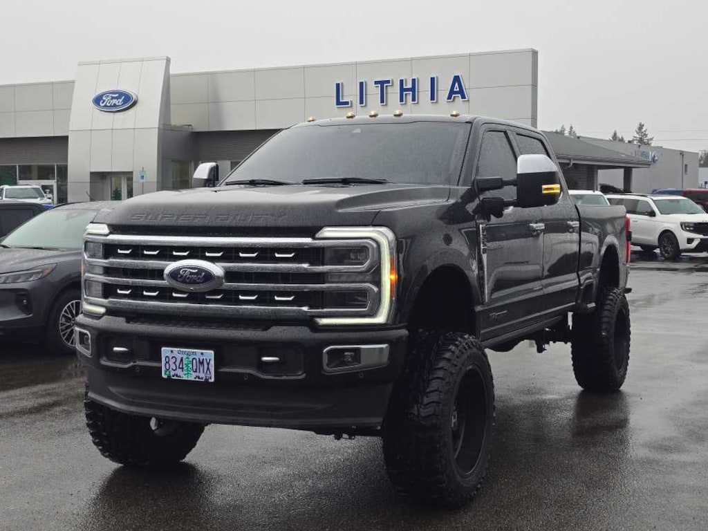ENGINE: 6.7L 4V OHV POWER STROKE V8 TURBO DIESEL B20 manual push-button engine-exhaust braking, Operator Commanded Regeneration (OCR) and intelligent oil-life monitor, 34 Gallon Fuel Tank, GVWR: 12,000 lb Payload Package, 3.31 Axle Ratio, Dual 68 AH AGM 750 CCA Batteries, TWIN PANEL POWER MOONROOF map lights and moonroof switches, ELECTRONIC-LOCKING W/3.55 AXLE RATIO, TRANSMISSION: TORQSHIFT 10-SPEED AUTOMATIC SelectShift and selectable drive modes: normal, eco, slippery roads, tow/haul and off-road (STD). 2023 Ford Super Duty F-350 SRW Pickup with Agate Black Metallic exterior and Black Onyx interior features a 8 Cylinder Engine with 475 HP at 2600 RPM*. Non-Smoker vehicle