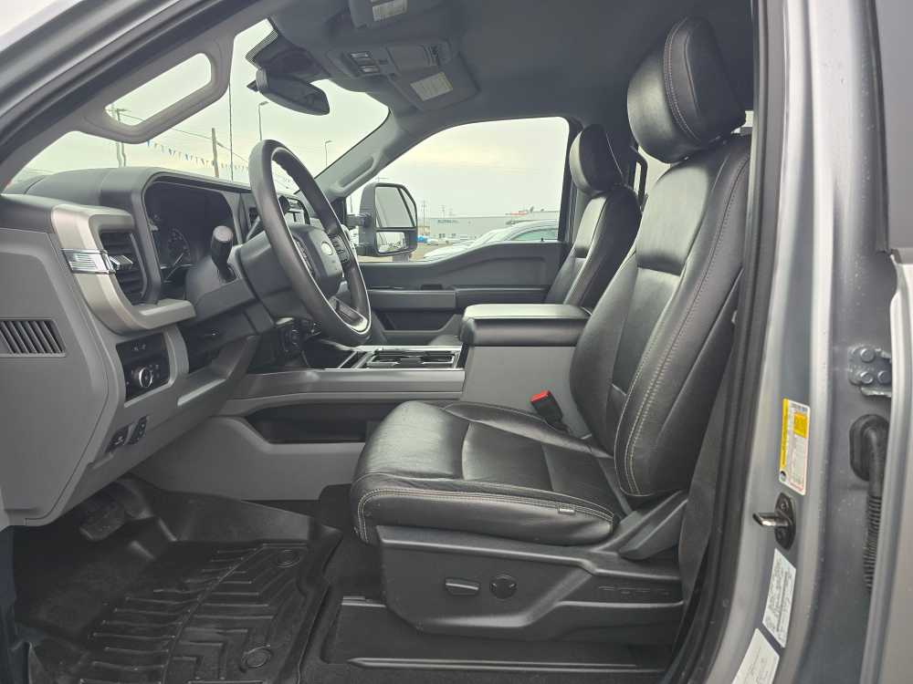 ENGINE: 6.7L 4V OHV POWER STROKE V8 TURBO DIESEL B20 manual push-button engine-exhaust braking, Operator Commanded Regeneration (OCR) and intelligent oil-life monitor, 48 Gallon Fuel Tank, GVWR: 12,000 lb Payload Package, 3.31 Axle Ratio, Dual 68 AH/65 AGM Batteries, 360-DEGREE CAMERA PACKAGE wired auxiliary trailer camera compatibility, Rear Parking Sensors, reverse sensing system w/reverse brake assist, LED Center High-Mounted Stop Lamp (CHMSL) Camera, LED center high-mounted stop lamp (CHMSL), 360-Degree Camera System, picture in picture capability, BLIS w/Cross-Traffic Alert, trailer coverage, 6 ANGULAR BRIGHT ANODIZED STEP BARS, TOUGH BED SPRAY-IN BEDLINER tailgate-guard, black box bed tie-down hooks and black bed attachment bolts, ELECTRONIC-LOCKING W/3.31 AXLE RATIO, POWERSCOPE TRAILER TOW MIRRORS W/HEAT power-folding w/Autofold, telescoping, power glass, turn signal, high intensity LED security approach lamps and utility lighting system (LED side-mirror spotlights), TIRES: LT275/70RX18E BSW Automatic Transmission (4) Spare may not be the same as road tire, REMOTE START SYSTEM, TRANSMISSION: TORQSHIFT 10-SPEED AUTOMATIC SelectShift and selectable drive modes: normal, eco, slippery roads, tow/haul and off-road (STD). 2023 Ford Super Duty F-350 SRW Pickup with Iconic Silver Metallic exterior and Medium Dark Slate interior features a 8 Cylinder Engine with 475 HP at 2600 RPM*. Non-Smoker vehicle