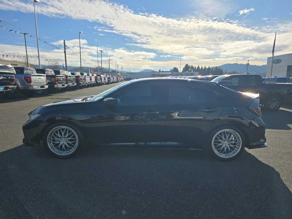 Leather Seats, Navigation, Sunroof, Heated Driver Seat, Heated Rear Seat, Back-Up Camera, Premium Sound System, Satellite Radio, iPod/MP3 Input, Onboard Communications System, Aluminum Wheels, Remote Engine Start, Dual Zone A/C, Lane Keeping Assist, Smart Device Integration Rear Spoiler, MP3 Player, Keyless Entry, Steering Wheel Controls, Child Safety Locks. 2018 Honda Civic Hatchback with Crystal Black Pearl exterior and Black interior features a 4 Cylinder Engine with 180 HP at 6000 RPM*. Non-Smoker vehicle