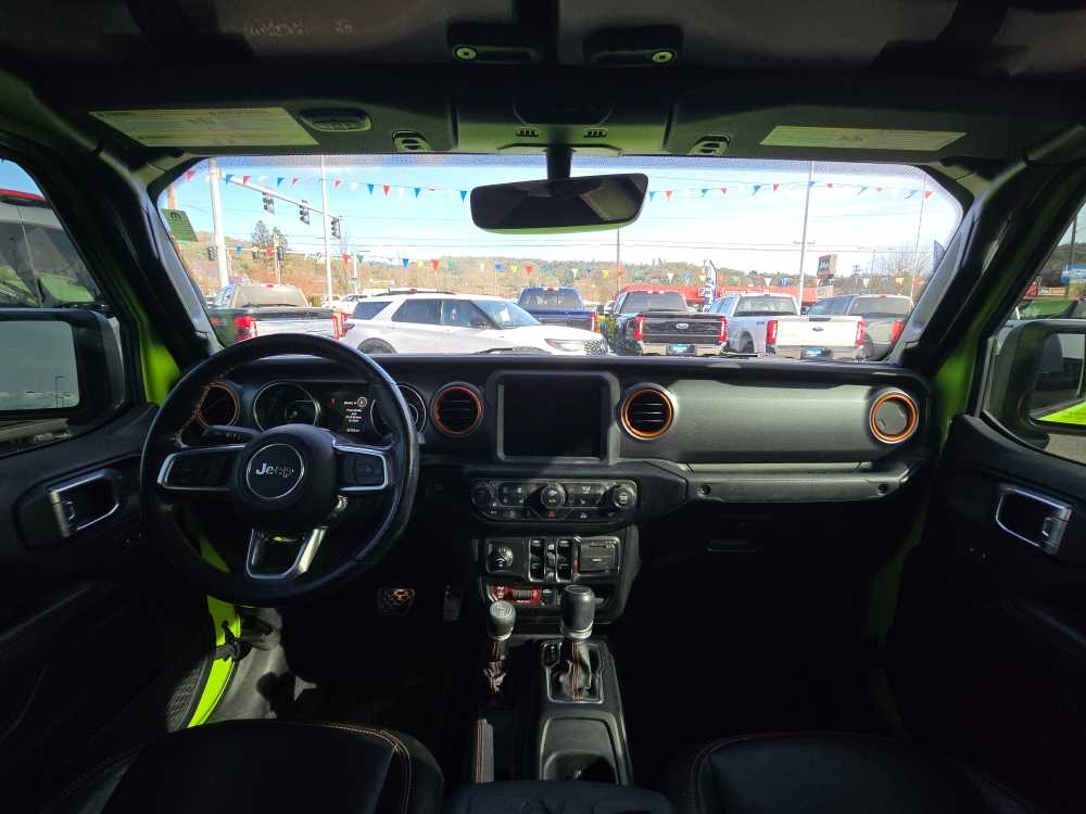 TRANSMISSION: 8-SPEED AUTOMATIC (850RE) Tip Start, Transmission Skid Plate, Selec-Speed Control, 8.4 RADIO & PREMIUM AUDIO GROUP SiriusXM Traffic Plus, Alpine Premium Audio System, HD Radio, Radio: Uconnect 4C Nav w/8.4 Display, Rear View Auto Dim Mirror, For Details, Visit DriveUconnect.com, 1-Year SiriusXM Guardian Trial, GPS Navigation, SiriusXM Travel Link, Emergency/Assistance Call, 8.4 Touchscreen Display, BLACK, LEATHER TRIMMED BUCKET SEATS Full Length Floor Console Premium Armrest, Leather Wrapped Park Brake Handle, Leather Wrapped Shift Knob, Premium Door Trim Panel, Rear Armrest w/Cupholder Seat, BLACK 3-PIECE HARD TOP Freedom Panel Storage Bag, Rear Window Defroster, Rear Sliding Window, LED LIGHTING GROUP Daytime Running Lamps LED Accents, LED Park Turn Lamps, Front LED Fog Lamps, LED Premium Reflector Headlamps, LED Taillamps, COLD WEATHER GROUP Heated Steering Wheel, Heated Front Seats, TRAILER TOW PACKAGE Trailer Hitch Zoom, Class IV Hitch Receiver, Heavy Duty Engine Cooling, 240 Amp Alternator, REMOTE START SYSTEM, MOPAR SPRAY IN BEDLINER, ENGINE: 3.6L V6 24V VVT UPG I W/ESS (STD). 2021 Jeep Gladiator with Limited Edition Gecko Clearcoat exterior and Black interior features a V6 Cylinder Engine with 285 HP at 6400 RPM*. Non-Smoker vehicle