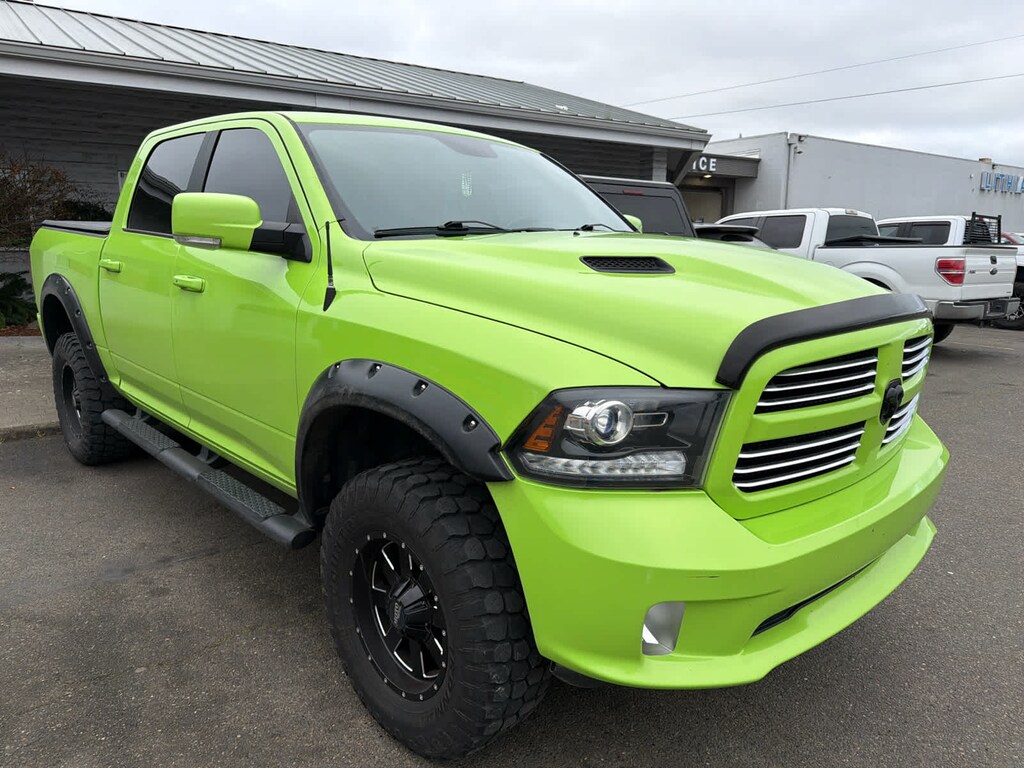SUBLIME GREEN SPORT PACKAGE Wheels: 20 x 9 Semi-Gloss Black Aluminum, Body Color/Bright Billets Grille, MOPAR Sport Performance Hood Decal, Flat Black 5.7L Hemi Badge, Black Ram Head Tailgate Badge, 4x4 Flat Black Badge, Sport Performance Hood, Flat Black Ram 1500 Badge, Black Closeout Trim, ENGINE: 5.7L V8 HEMI MDS VVT Engine Oil Heat Exchanger, POWER SUNROOF, RADIO: UCONNECT 3C NAV W/8.4 DISPLAY Uconnect Access, HD Radio, (Registration Required), GPS Navigation, SiriusXM Travel Link, SIRIUSXM Traffic, 1 Year Sirius Real Time Traffic Service, CONVENIENCE GROUP Keyless GO®, Remote Proximity Keyless Entry, Auto High Beam Headlamp Control, Rain Sensitive Windshield Wipers, TRANSMISSION: 8-SPEED AUTOMATIC (8HP70), SPRAY IN BEDLINER, ANTI-SPIN DIFFERENTIAL REAR AXLE, PREMIUM SOUND GROUP 9 Alpine Speakers w/Subwoofer, CLASS IV RECEIVER HITCH. 2017 Ram 1500 with Sublime Met. Clear Coat exterior and Black interior features a 8 Cylinder Engine with 305 HP at 6400 RPM*. Non-Smoker vehicle