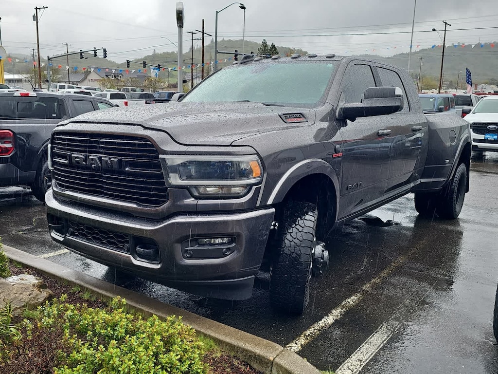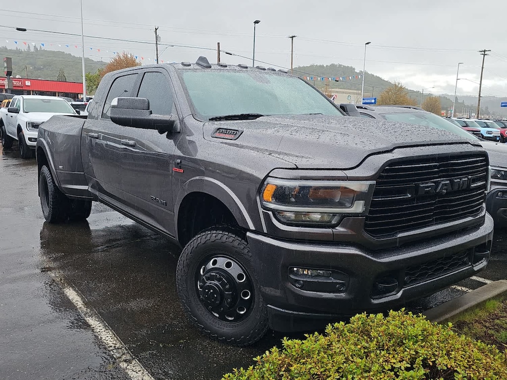 ENGINE: 6.7L I6 CUMMINS HD TURBO DIESEL Selective Catalytic Reduction (Urea), Dual 730 Amp Maintenance Free Batteries, Cummins Turbo Diesel Badge, Heavy Duty Engine Cooling, Supplemental Heater, 220 Amp Alternator, GVWR: 12,300 lbs, Current Generation Engine Controller, Diesel Exhaust Brake, Capless Fuel Fill w/o Discriminator, RADIO: UCONNECT 12.0 W/NAVIGATION SiriusXM Traffic Plus, Disassociated Touchscreen Display, HD Radio, For Details Visit DriveUconnect.com, 1-Year SiriusXM Guardian Trial, 12 Touchscreen Display, GPS Navigation, SiriusXM Travel Link, SiriusXM w/360L, LARAMIE LEVEL 1 EQUIPMENT GROUP Remote Tailgate Release, Auto High Beam Headlamp Control, Blind Spot & Cross Path Detection, Power Chrome Tow Mirrors w/Convex Spotter & Memory, Mirror-Mounted Aux Reverse Lamps, Exterior Mirrors w/Memory, Power Adjustable Convex Aux Mirrors, Rain Sensitive Windshield Wipers, Power Adjustable Pedals w/Memory, Foam Bottle Insert (Door Trim Panel), Radio/Driver Seat/Mirrors/Pedals Memory, Ventilated Front Seats, DUAL REAR WHEELS Clearance Lamps, Tires: LT235/80R17E BSW AS, Tire Pressure Monitoring Delete, 17 Steel Spare Wheel, Box & Rear Fender Clearance Lamps, 6000# Front Axle w/Hub Ext, Wheels: 17 x 6.0 Polished Aluminum, GVWR: 14,000 lbs, TOWING TECHNOLOGY GROUP CTR Stop Lamp w/Cargo View Camera, Mirror-Mounted Aux Reverse Lamps, Surround View Camera System, Exterior Mirrors w/Memory, Power Chrome Tow Mirrors w/Convex Spotter & Memory, Trailer Reverse Guidance, Power Adjustable Convex Aux Mirrors, BLACK, LEATHER TRIMMED BUCKET SEATS Bucket Seats, Power 2-Way Passenger Lumbar Adjust, Power 2-Way Driver Lumbar Adjust, Full Length Upgraded Floor Console, TRANSMISSION: 6-SPEED AUTOMATIC AISIN AS69RC HD 12.0 Single Rear Wheel Axle, Transmission Oil Cooler, Chrome Accent Shift Control. 2020 Ram 3500 with Granite Crystal Metallic Clearcoat exterior and Black interior features a Straight 6 Cylinder Engine with 400 HP at 2800 RPM*. Non-Smoker vehicle