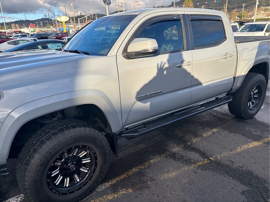 TECHNOLOGY PACKAGE Rear Parking Assist Sonar, Blind Spot Monitor w/Rear Cross Traffic Alert, HARD TRI-FOLD TONNEAU COVER, ALL WEATHER FLOOR LINER & DOOR SILL PROTECTOR PKG Door Sill Protectors, TRD SPORT PACKAGE (PY) leather shift lever and knob, Sport grade package, Smart Key w/Push Button Start. 2019 Toyota Tacoma with Cement exterior and Graphite w/Gun Metal interior features a V6 Cylinder Engine with 278 HP at 6000 RPM*. Non-Smoker vehicle