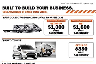 Looking to add some new vehicles to your business? Our finance center can help you get there. Simply fill out our credit application and check out our incentives to get started and our finance experts can start pinning down the best possible payment solutions for you. Feel free to contact us today so we can help you find the ideal commercial vehicle for you!