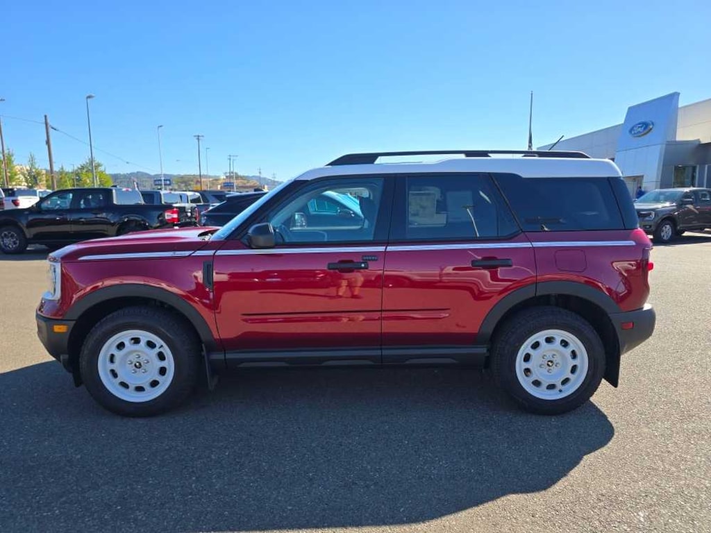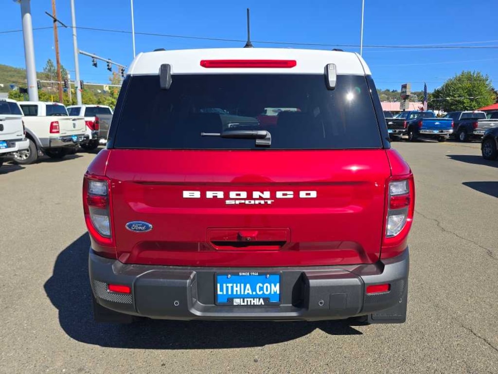 CONVENIENCE PACKAGE Heated 8-Way Power Drivers Seat, (Fore/aft, up/down, recline, lumbar), Universal Garage Door Opener (UGDO), Premium Wrapped Steering Wheel, LED Fog Lamps, POWER MOONROOF, FRONT & REAR FLOOR LINERS W/O CARPET MATS. 2025 Ford Bronco Sport with Ruby Red Metallic Tinted Clearcoat exterior and Navy Pier interior features a 3 Cylinder Engine with 181 HP at 6000 RPM*. Non-Smoker vehicle