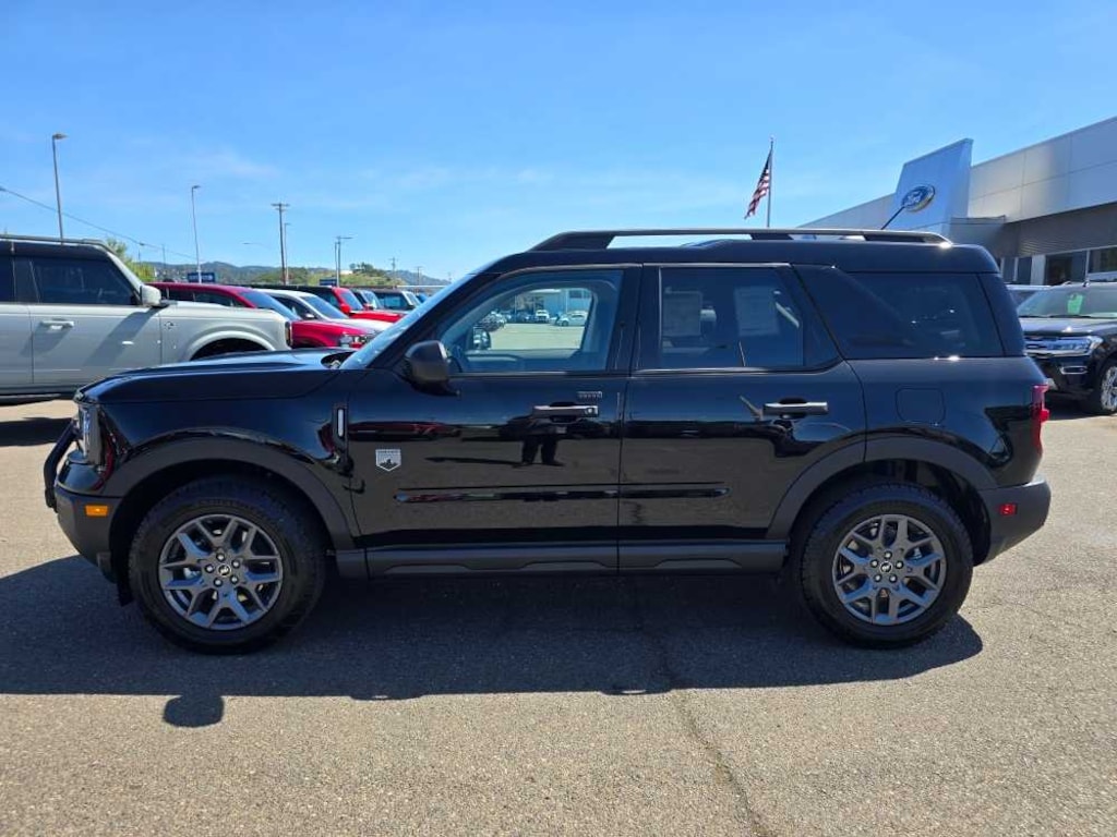 BLACK DIAMOND OFF-ROAD PACKAGE Deletes standard tire inflator and sealant kit and overhead console w/sunglasses storage, Brush Guard, Recovery Hooks, 2 casted in front and 2 D-ring in rear, 2nd Row Carpeted Seatback, rubberized seatback mat, Auxiliary Switches & Wiring, Class II Trailer Tow Pack w/Trailer Sway Control, full size spare wheel, full size spare tire and rubberized cargo floor, Underbody Protection, steel skid plate under engine, steel fuel tank shield and steel canister shield, Cargo Mat, Front & Rear Black Bumpers, Molded-in-color w/steel plates, Cargo Management System (Shelf/Divider/Table), Interior Grab Handle, 1 in the center floor console front row passenger side, Fender Tie Downs, 110V/400W AC Power Outlet, Behind center console and cargo area, Wheels: 17 Carbonized, CONVENIENCE PACKAGE Heated 8-Way Power Drivers Seat, (Fore/aft, up/down, recline, lumbar), Front Driver/Passenger Seat Back Map Pockets, Universal Garage Door Opener (UGDO), Premium Wrapped Steering Wheel, LED Fog Lamps. 2025 Ford Bronco Sport with Shadow Black exterior and Medium Lt Smoked Truffle interior features a 3 Cylinder Engine with 181 HP at 6000 RPM*. Non-Smoker vehicle