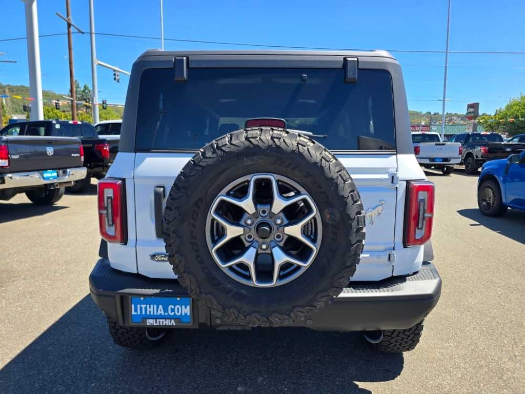 DUAL TOPS carbonized gray molded-in-color (MIC) hard top and black soft top, Rear-Window Defroster & Washer, ENGINE: 2.7L ECOBOOST V6 GVWR: 6,180 lbs, TRANSMISSION: 10-SPEED AUTOMATIC remote start system, trail control, trail turn assist and trail one-pedal driving, 4.46 Axle Ratio. 2025 Ford Bronco with Oxford White exterior and Black Onyx interior features a V6 Cylinder Engine with 315 HP at 5500 RPM*. Non-Smoker vehicle Superb Condition