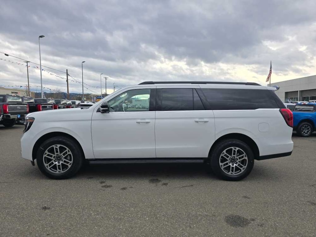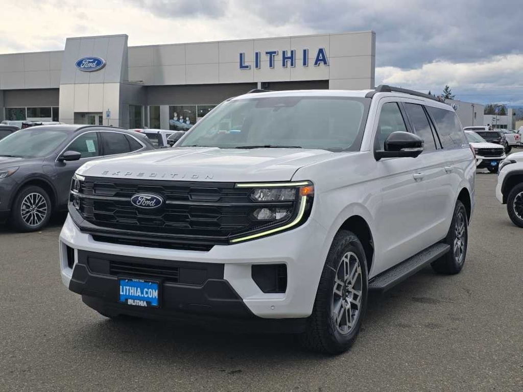 EQUIPMENT GROUP 202A HIGH PACKAGE Ford Split Gate, power upper liftgate and power lower tailgate, Wheels: 20 Carbonized Gray Bright Machined Aluminum, 360-Degree Zone Lighting, 110V/400W AC Power Outlet, 1 console outlet and one cargo area outlet, BlueCruise Equipped, 90-day trial, Not available to military sales, Universal Garage Door Opener, Power Panoramic Vista Roof w/Power Sunshade, Rain Sensing Wipers, Power Tilt/Telescopic Steering Wheel w/Memory, Memory Driver Seat, Tires: P275/60R20 AT, Ford Co-Pilot360 Active 2.0, Driver State Detection, Intersection Assist, pre-collision assist w/autonomous emergency braking, pedestrian detection, forward collision warning and dynamic brake support, Front Side Laminated Glass, Wireless Charging Pad, Located in media hub, 2nd Row Power-Folding, FLOOR LINERS, FRONT & SECOND ROWS (TRAY STYLE) standard color-keyed carpet floor mats - front and second rows. 2025 Ford Expedition Max with Oxford White exterior and Dark Gray interior features a V6 Cylinder Engine with 400 HP at 5200 RPM*. Non-Smoker vehicle Superb Condition