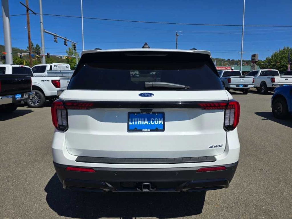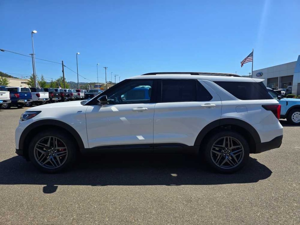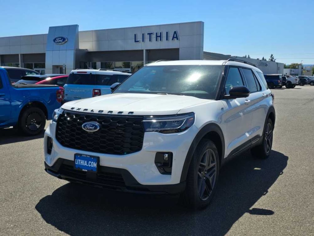 remote control front windows (opens front windows from outside of the vehicle via the key fob), 110V/150W AC Power Outlet, Replaces the powerpoint port on the rear side of the center floor console, Auto-Dimming Interior Rearview Mirror, Memory Drivers Seat, Power-Folding Sideview Mirrors w/Autofold, power and heated glass, LED turn signal indicators, security approach lamps, drivers side auto-dimming and driver and passenger side memory, Rain-Sensing Wipers (Front Only), Ambient Lighting, Wireless Charging Pad, 2nd Row Heated Seats, Wheels: 21 Magnetite-Painted Aluminum, Tires: P275/45R21 AS BSW, Performance Brakes, Red Painted Perf Front & Rear Brake Calipers, 18 spare tire, E-Z entry is manually activated, Replaces standard 2nd row 35/30/35 bench seats, (STD). 2025 Ford Explorer with Star White Metallic Tri-Coat exterior and Onyx interior features a 4 Cylinder Engine with 300 HP at 5500 RPM*. Non-Smoker vehicle