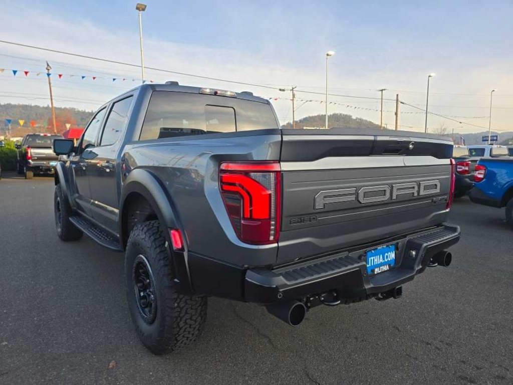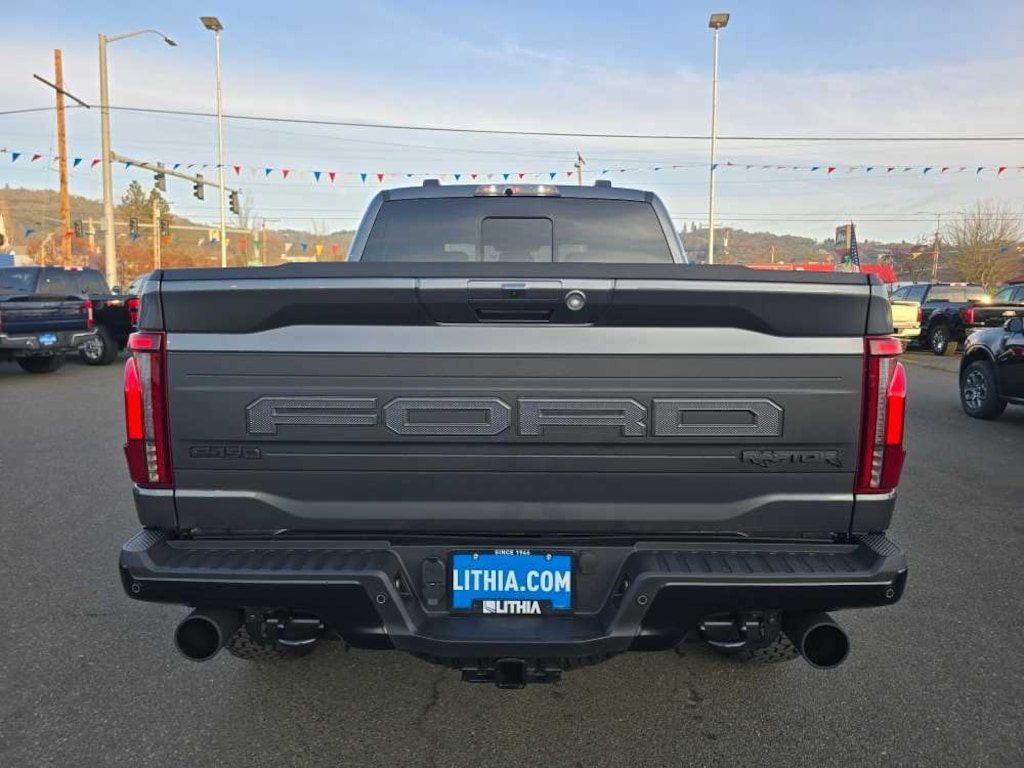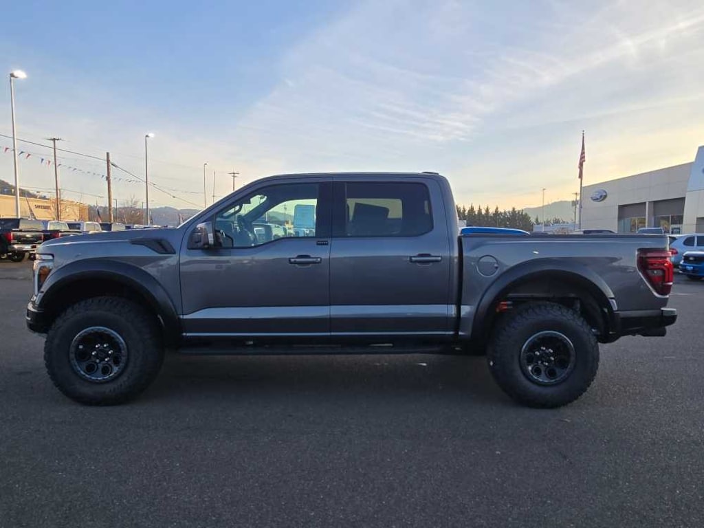EQUIPMENT GROUP 802A RAPTOR 37 Dual Valve Shocks, Wheels: Raptor 37 Unique 17 Cast Aluminum, Bead lock capable, Carbon Fiber Interior Appliques, Modular Front Bumper, Tires: 37x12.5R17 BSW All-Terrain, GVWR: 7,400 lbs, TWIN PANEL MOONROOF, TOUGH BED SPRAY-IN BEDLINER, TRANSMISSION: ELECTRONIC 10-SPEED AUTOMATIC SelectShift w/paddle shifters and terrain management modes: normal, sport, tow-haul, slippery, rock crawl, off-road and baja (STD). 2025 Ford F-150 with Carbonized Gray Metallic exterior and Black interior features a V6 Cylinder Engine with 450 HP at 5250 RPM*. Non-Smoker vehicle Superb Condition