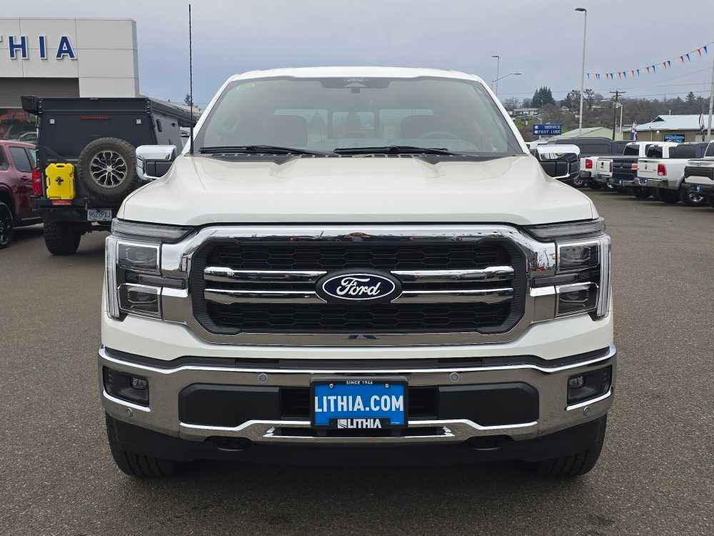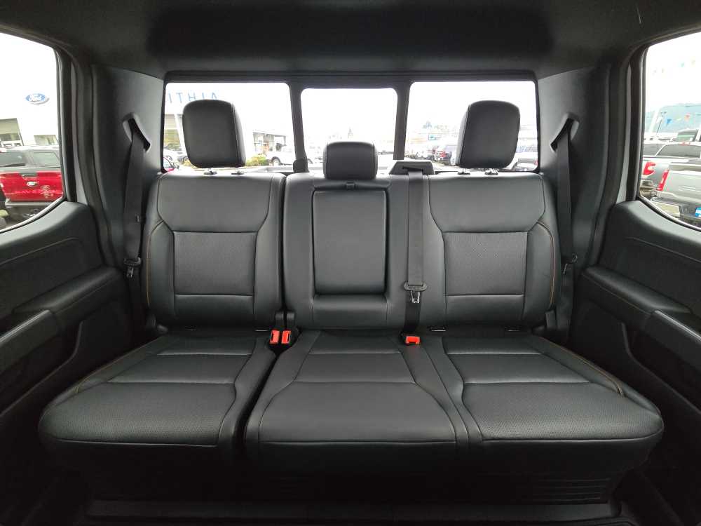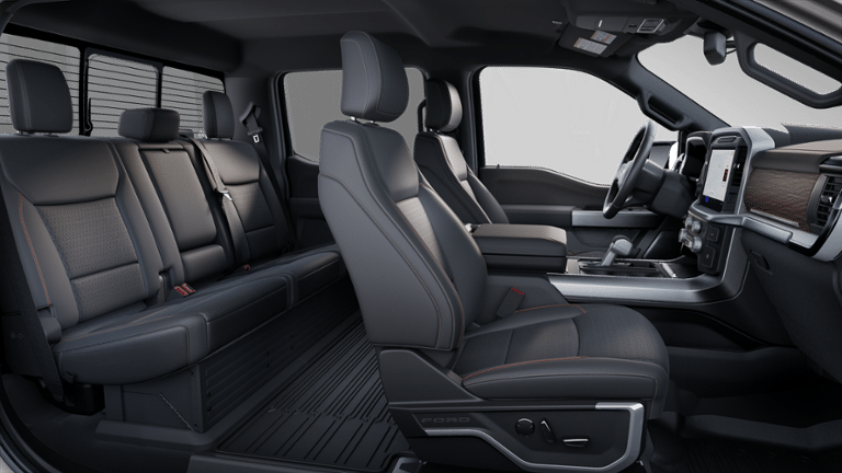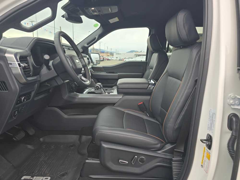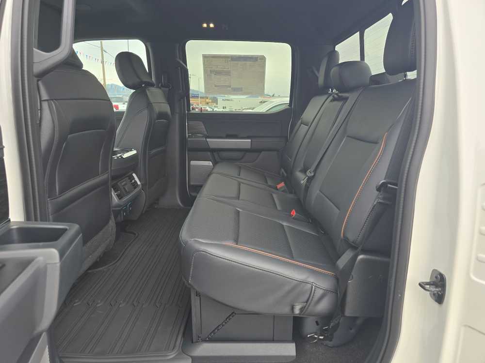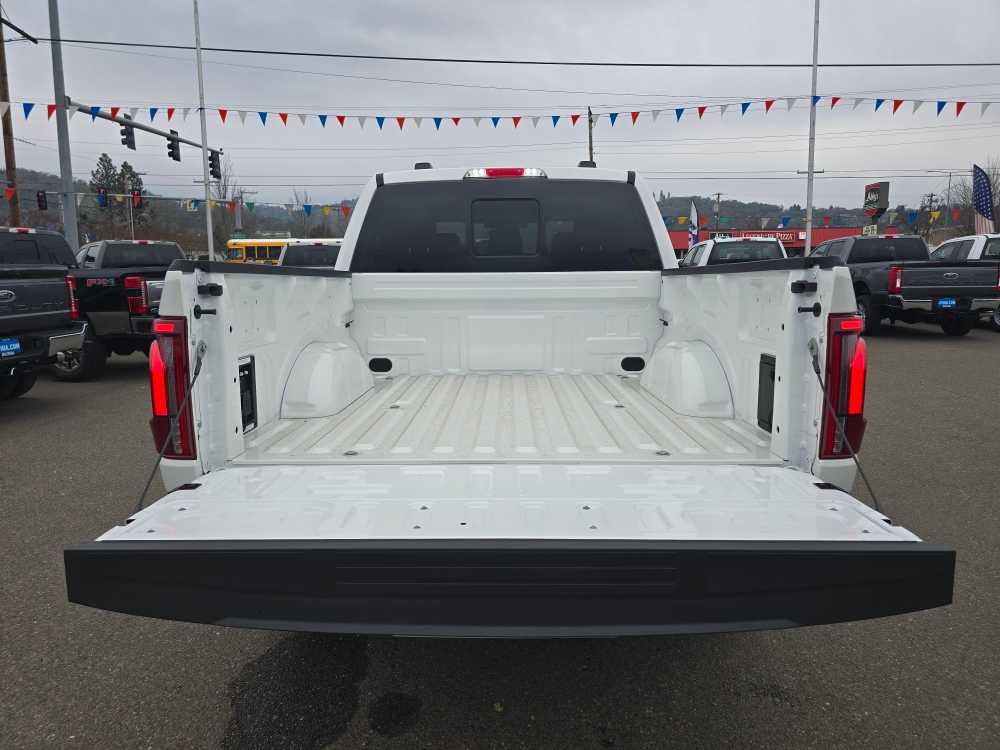 EQUIPMENT GROUP 502A HIGH Ambient Lighting - Ice Blue Color Only, Wheels: 20 Chrome-Like PVD, Radio: B&O Unleashed Sound System by Bang & Olufsen, HD Radio and 14 speakers including subwoofer, 2nd Row Heated Seats, Mobile Office Package, Wireless Charging, Partitioned Lockable Rear Storage, Console Worksurface, 6 Extended Angular Bright Anodized Step Bar, Power-Sliding Rear Window, Heads-Up Display, Illuminated Driver & Passenger Visors, covered mirrors, Tires: 275/60R20 All-Terrain, ENGINE: 3.5L POWERBOOST FULL-HYBRID V6 Pro Power Onboard 2.4KW and removes 36 gallon fuel tank, GVWR: 7,400 lbs Payload Package, Electronic Locking w/3.73 Axle Ratio, TRAY STYLE FLOOR LINER W/CARPET MATS. 2025 Ford F-150 with Star White Metallic Tri-Coat exterior and Black interior features a V6 Cylinder Engine with 430 HP at 6000 RPM*.