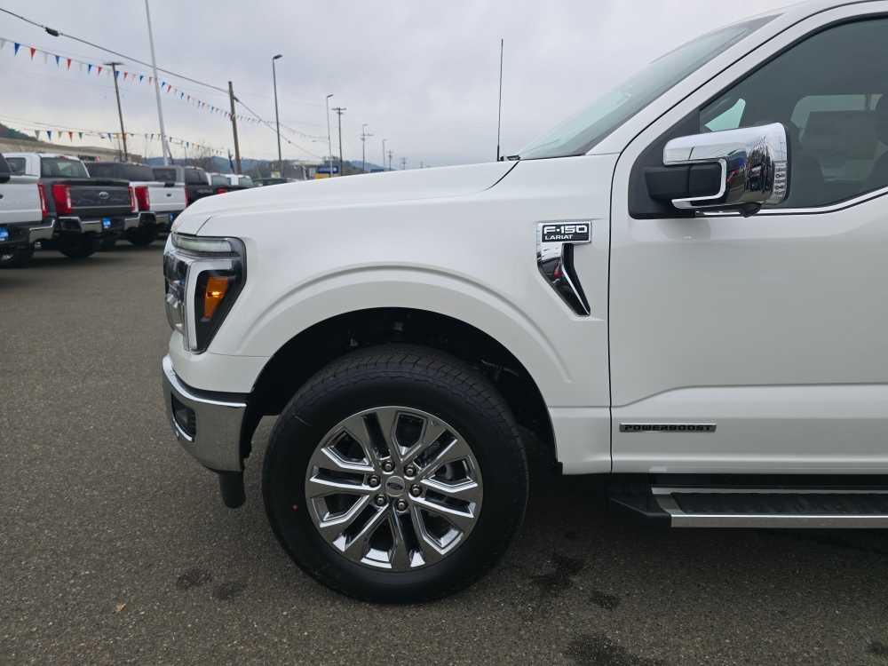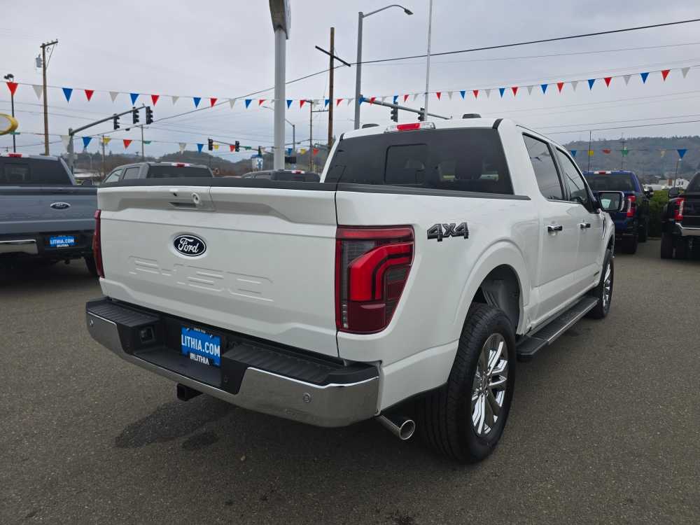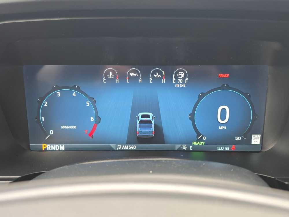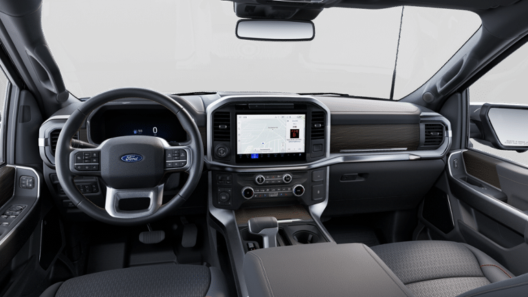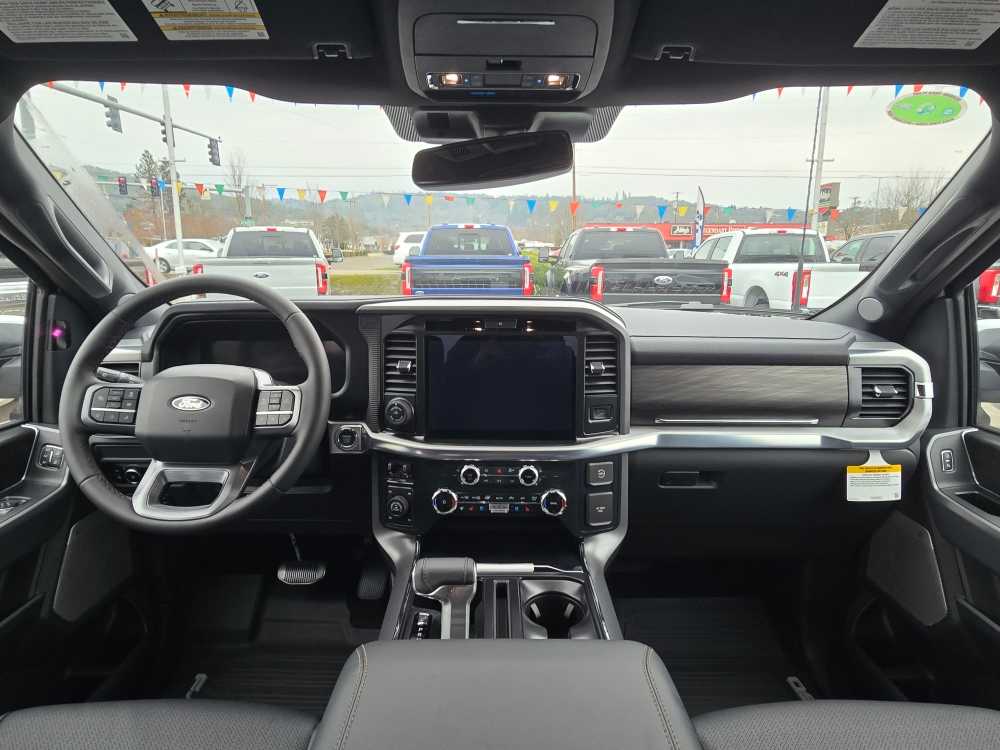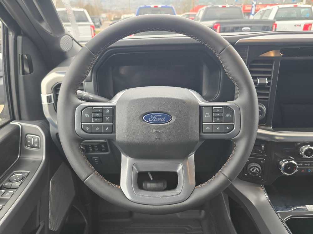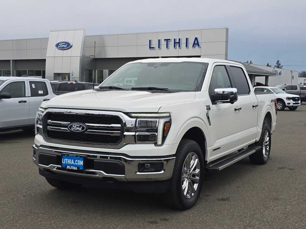EQUIPMENT GROUP 502A HIGH Ambient Lighting - Ice Blue Color Only, Wheels: 20 Chrome-Like PVD, Radio: B&O Unleashed Sound System by Bang & Olufsen, HD Radio and 14 speakers including subwoofer, 2nd Row Heated Seats, Mobile Office Package, Wireless Charging, Partitioned Lockable Rear Storage, Console Worksurface, 6 Extended Angular Bright Anodized Step Bar, Power-Sliding Rear Window, Heads-Up Display, Illuminated Driver & Passenger Visors, covered mirrors, Tires: 275/60R20 All-Terrain, ENGINE: 3.5L POWERBOOST FULL-HYBRID V6 Pro Power Onboard 2.4KW and removes 36 gallon fuel tank, GVWR: 7,400 lbs Payload Package, Electronic Locking w/3.73 Axle Ratio, TRAY STYLE FLOOR LINER W/CARPET MATS. 2025 Ford F-150 with Star White Metallic Tri-Coat exterior and Black interior features a V6 Cylinder Engine with 430 HP at 6000 RPM*.