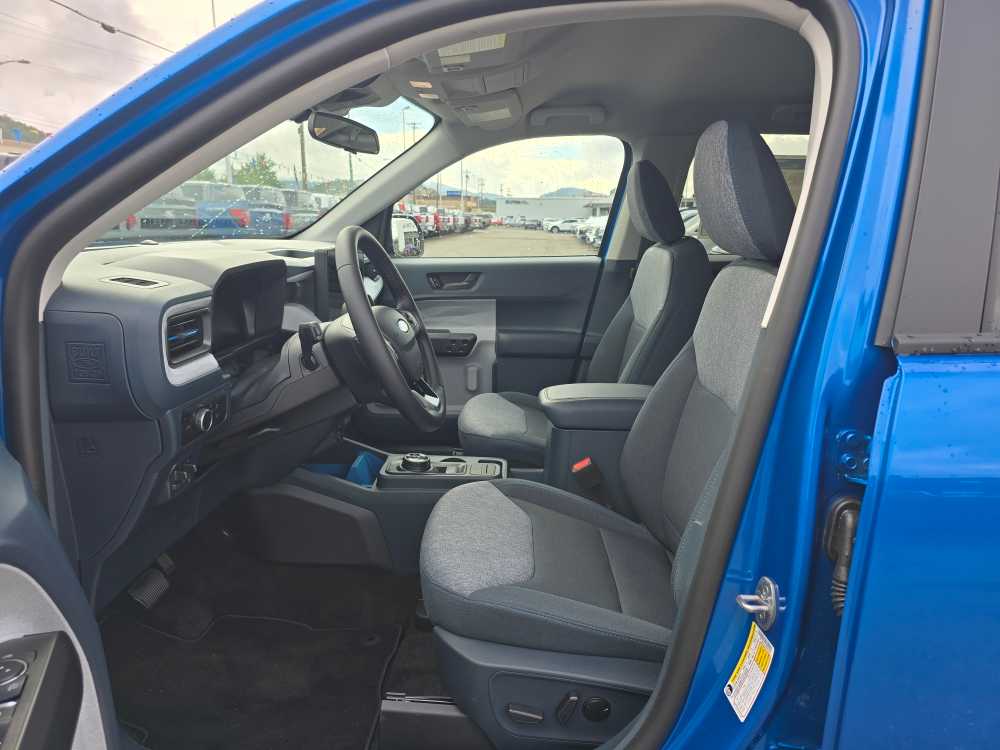 XLT LUXURY PACKAGE Remote Start System, Soft Vinyl Wrapped Heated Steering Wheel, 400W Inverter w/USB Console Rear, Cab and bed includes cubby cover, Heated Mirror w/Painted Black Skull Caps, Heated Seats, 8-way power driver and 6-way manual passenger seats, LED Box Lighting, FORD CO-PILOT360 1.0 Evasive Steering Assist, Intersection Assist, AEB oncoming, Cross Traffic Brake Assist, BLIS w/Cross-Traffic Alert, Rear Parking Sensors, Power Glass Manual-Folding Mirrors, blind spot information system, Lane-Keeping System, Lane-Keeping Alert, lane-keeping aid and Driver Alert, 4K TOW PACKAGE Trailer Hitch (Class III) 2 Receiver, 4-pin and 7-pin connector, Conventional 17 Spare Tire (215/70R17), Transmission Oil Cooler, Upgraded Cooling Fan, Trailer Brake Controller, EQUIPMENT GROUP 302A Engine: 2.0L EcoBoost, 3.63 Axle Ratio, Transmission: 8-Speed Automatic. 2025 Ford Maverick with Velocity Blue exterior and Navy Pier/Aspen Gray interior features a 4 Cylinder Engine with 191 HP at 5600 RPM*. Non-Smoker vehicle