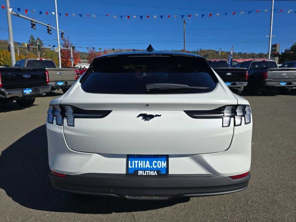 ENGINE: DUAL MOTOR (FRONT/REAR) (EAWD) (99U) 88kWh usable capacity extended range battery, PANORAMIC FIXED-GLASS ROOF Infrared Reflective (IRR) windshield, WHEELS: 19 BRIGHT MACHINED FACE ALUMINUM sinister bronze painted pockets, TRANSMISSION: SINGLE SPEED (STD). 2025 Ford Mustang Mach-E with Star White Metallic Tri-Coat exterior and Black Onyx interior features a Electric Motor. Non-Smoker vehicle Superb Condition