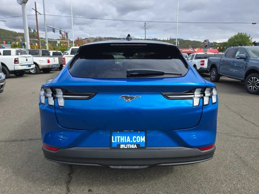 ENGINE: DUAL MOTOR (FRONT/REAR) (EAWD) (99U) 88kWh usable capacity extended range battery, PANORAMIC FIXED-GLASS ROOF Infrared Reflective (IRR) windshield, TRANSMISSION: SINGLE SPEED (STD). 2025 Ford Mustang Mach-E with Velocity Blue Metallic exterior and Black Onyx interior features a Electric Motor. Non-Smoker vehicle Superb Condition