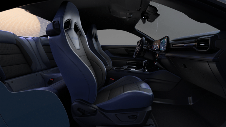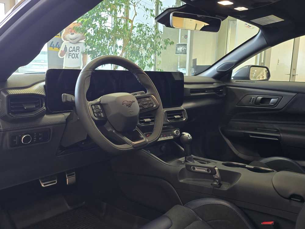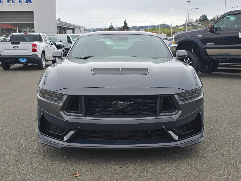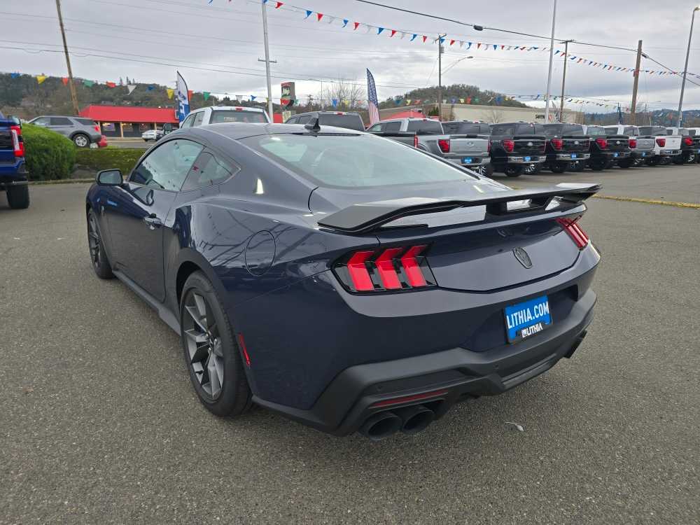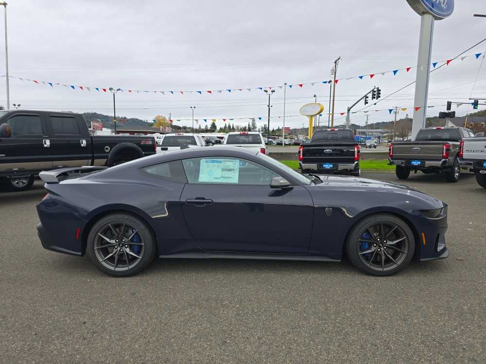 DARK HORSE HANDLING PACKAGE: adjustable strut top mounts (installed at plant) and revised chassis tuning, Magnetic Damping System, Performance Rear Spoiler w/Gurney Flap, Painted shadow black, Wheels: 19 x 10.5 Fr/19 x 11 Rr Tarnished Alum, Dark-painted, Tires: 305/30R19 Front & 315/30R19 Rear, Front Towing Hooks, Performance Front Aero Splitter, Placed in vehicle for installation post-sale, EQUIPMENT GROUP 700A DELUXE PACKAGE: Premier Trim w/Color Accent Group, accent stitched center console lid and shifter boot and unique color-accented door-trim, Security Package, Active Anti-Theft System, Locking Center Console, Wheel Locking Kit, Approach Detection, welcome/farewell exterior lighting, Universal Garage Door Opener (UGDO), Driver Seat & Mirrors Memory, 3 settings, Aluminum Foot Pedals, DARK HORSE APPEARANCE PACKAGE: additional blue seat accents, California special badge on strut tower brace and performance package front splitter, Notorious Blue Painted Brake Calipers, grabber blue logo, Painted Black Roof, Unique Hood Graphic, RECARO SPORT SEATS, WHEELS: 19 X 9.5 FR/19 X 10 RR SINISTER BRONZE: Painted aluminum, Tires: 255/40R19 Fr & 275/40R19 Rr Summer, BLUE EMBER METALLIC. 2025 Ford Mustang with Blue Ember Metallic exterior and Black w/Blue Accents interior features a 8 Cylinder Engine with 500 HP at 5000 RPM*. Non-Smoker vehicle Superb Condition