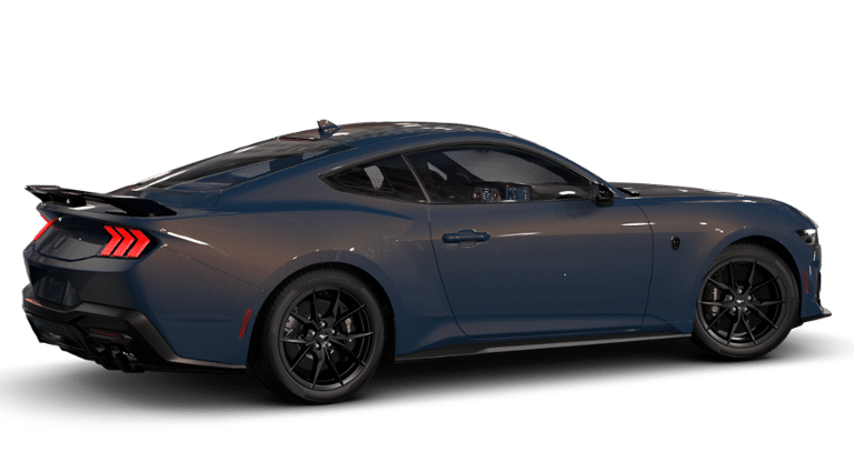 DARK HORSE Heated Seats, Navigation, Smart Device Integration, Lane Keeping Assist, Blind Spot Monitor, Dual Zone A/C, Keyless Start, Onboard Communications System. Blue Ember Metallic exterior and Black w/Blue Accents interior.