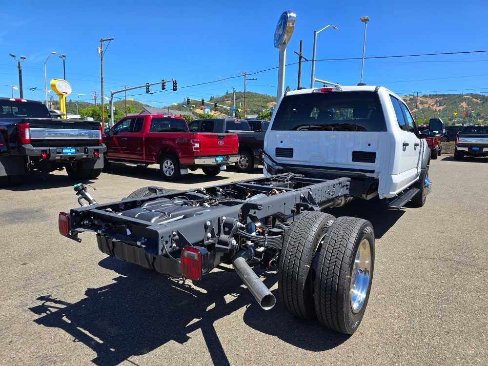 ENGINE: 6.7L 4V OHV POWER STROKE V8 TURBO DIESEL B20: Operator Commanded Regeneration (OCR), Diesel Exhaust Fluid (DEF) tank and manual push-button engine-exhaust braking, 4.10 Axle Ratio, XLT VALUE PACKAGE: Power Adjustable Pedals, Electrochromic Rear View Mirror, Heated Drivers Seat, 8-Way Power Drivers Seat, Remote Start, Autolock/Auto Unlock, Rear Window Defroster, HIGH CAPACITY TRAILER TOW PACKAGE: trailer brake wiring kit, Increases GCW from 32,500 lbs, to 35,000 lbs, Note: Salespersons Portfolio or Trailer Towing Guide should be consulted for specific trailer towing or camper limits and corresponding required equipment, axle ratios and model availability, See Supplemental Reference for vehicle height consideration, REAR VIEW CAMERA & PREP KIT: Pre-installed content includes cab wiring and frame wiring to the rear most cross member, Upfitters kit includes camera w/mounting bracket, 20 jumper wire and camera mounting/aiming instructions, STAINLESS STEEL WHEEL COVERS (PRE-INSTALLED): Front and rear, EXTRA HEAVY-DUTY FRONT END SUSPENSION - 7,500 GAWR: upgraded front axle and max 7,500 lbs, Front springs/GAWR rating for configuration selected, Incomplete vehicle package - requires further manufacture and certification by a final stage manufacturer, TRANSMISSION: TORQSHIFT 10-SPEED AUTOMATIC: SelectShift, selectable drive modes: normal, tow/haul, eco, slippery roads and off-road and transmission power take-off provision (STD), GVWR: 16,000 LB PAYLOAD PACKAGE, LIMITED SLIP W/4.30 AXLE RATIO, OXFORD WHITE. 2025 Ford Super Duty F-450 DRW Chassis Cab with Oxford White exterior and Medium Dark Slate interior features a 8 Cylinder Engine with 330 HP at 2200 RPM*. Non-Smoker vehicle Excellent Condition