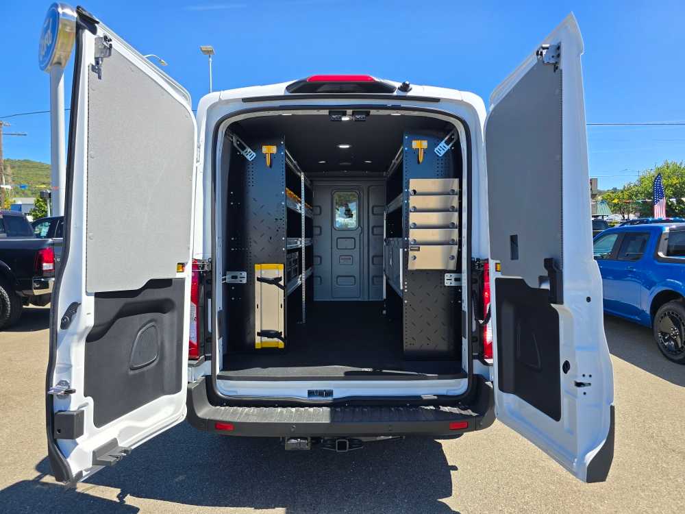 ENGINE: 3.5L ECOBOOST V6, HEAVY-DUTY TRAILER TOW PACKAGE Deletes rear tow hook, 4/7 pin connector assembly and rear jumper and relay system for backup/B+/running lights, This package does not include a Trailer Brake Controller (TBC) (67D), Frame Mounted Hitch Receiver, Tow/Haul Mode w/Trailering Wiring Provisions, REVERSE SENSING SYSTEM, RADIO: AM/FM STEREO W/SYNC 3 4.0 multi-function display, Bluetooth®, dual USB ports and 4 speakers (front), DARK PALAZZO GRAY CLOTH BUCKET SEATS W/ARMRESTS 2-way manual driver seat w/lumbar and 2-way manual passenger seat, TRANSMISSION: 10-SPD AUTOMATIC W/OD & SELECTSHIFT auxiliary transmission oil cooler (STD). 2025 Ford Transit Cargo Van with Oxford White exterior and Dark Palazzo Gray interior features a V6 Cylinder Engine with 310 HP at 5000 RPM*. Non-Smoker vehicle Superb Condition