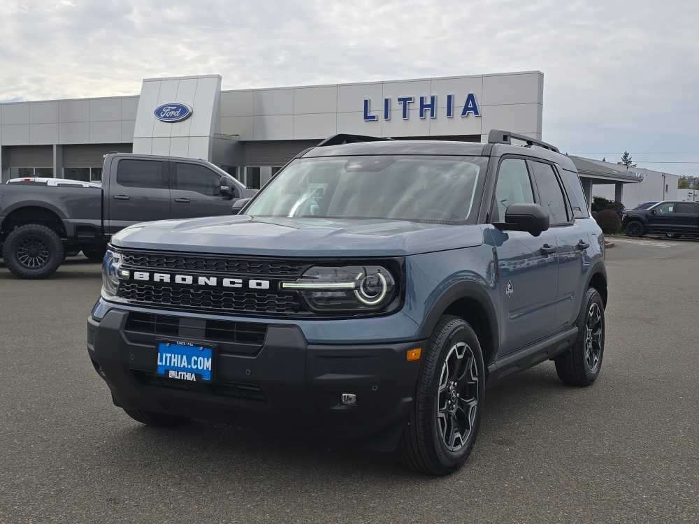 OUTER BANKS TECH PACKAGE+ Ford Co-Pilot360 Assist 2.0, Reverse Brake Assist, Front Parking Sensors, 360-Degree Camera w/Trail View, power heated glass sideview mirrors w/manual fold and memory, Radio: HD w/B&O Sound System by Bang & Olufsen, 10 speakers and subwoofer, Connected Navigation (1-Year Included), FORD CONNECTIVITY PACK (1-TIME PURCHASE - 7 YEARS) unlimited Wi-Fi hotspot, audio and video streaming, voice assistant and entertainment, Select option for a one-time purchase of Ford connectivity package, Ford connectivity package will be active for 7 years on this vehicle (non-transferrable to another VIN) from warranty start date, Requires activation via Ford app, Evolving technology/cellular networks/vehicle capability may limit functionality and prevent operation of connected features, Ford may temporarily slow data speeds if such data usage reaches or exceeds 50GB within a 30-day period or due to network limitations, If a customer uses more than 50% of their data usage in a roaming country during a 60-day period, Ford may remove or limit the customers data plan, ENGINE: 1.5L ECOBOOST auto start-stop technology (STD). 2026 Ford Bronco Sport with Azure Gray Metallic Tri-Coat exterior and Ebony/Roast interior features a 3 Cylinder Engine with 181 HP at 6000 RPM*. Non-Smoker vehicle