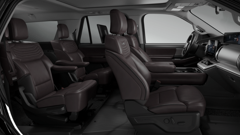 PLATINUM ULTIMATE PACKAGE Satin Aluminum Expedition Lettering On Side & Hood, Chrome Roof Rails w/Black End Caps, Satin Aluminum Platinum Badge On Tailgate, BlueCruise (Equipment + 1-Year + 90-Day Plan), After this initial duration, customers need to purchase a subscription to continue using BlueCruise, See subscription options, pricing, and version details on ford.com/bluecruise, Ford Co-Pilot360 Active 2.0, Intersection Assist, Rear Side Windows Laminated Glass, Black Headlamp Bezel w/Satin Trim Applique, Black Onyx Painted Power Deployable Running Boards, Polished Stainless Steel Beltline Molding, Drivers Package, Tires: P275/50R22 AS BSW, Radio: B&O Play Unleashed, speed-compensated volume, 22-speakers w/subwoofer, B&O Beosonic customizable sound experience (4 sound spaces: bright, REAR SEAT ENTERTAINMENT Screens will contain 60W USB ports, FORD CONNECTIVITY PACKAGE (1-TIME PURCHASE) 7 years, 5G connectivity for Ford digital experience, unlimited Wi-Fi hotspot, audio and video streaming, productivity (video conferencing, web browser), voice assistant and entertainment, Requires activation via Ford app, Not available for fleet orders, Evolving technology/cellular networks/vehicle capability may limit functionality and prevent operation of connected features, Ford may temporarily slow data speeds if such data usage reaches or exceeds 50GB within a billing cycle or due to network limitations, If a customer uses more than 50% of their data usage in a roaming country during a 60-day period, Ford may remove or limit the customers data plan, 2ND ROW POWER-FOLDING 40/20/40 BENCH SEAT tip-and-slide, FRONT & 2ND ROWS FLOOR LINERS (TRAY STYLE). 2026 Ford Expedition Max with Agate Black exterior and Mojave Dusk w/ Accent Stitching interior features a V6 Cylinder Engine with 400 HP at 5200 RPM*.