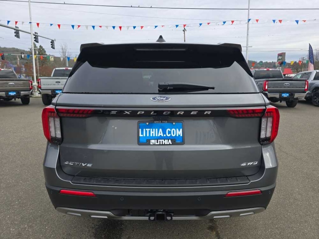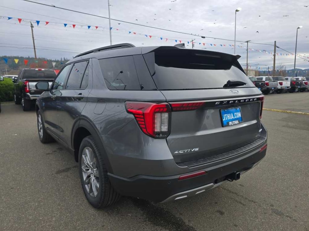ACTIVE COMFORT PACKAGE Second Row HVAC Controls, Heated Steering Wheel, Front Fascia, LED fog lamps w/silver-painted front skid plate elements and LED signature lighting, Remote Start System, EQUIPMENT GROUP 200A STANDARD PACKAGE Active Badging, Black Roof-Rack Side Rails, Manual-Folding Sideview Mirrors, power and heated glass, security approach lamps and black caps, 8 USB Ports, in the first row - A port and C port in media bin, 2 C ports in center floor console; in the second row - 2 C ports; and in the third row - 2 C ports, Power Liftgate, Vinyl-Wrapped Steering Wheel, Active Noise Cancellation, Black Lower Bodyside Cladding w/Chrome Accent, WHEELS: 20 LUSTER NICKEL-PAINTED ALUMINUM Tires: P255/55R20 AS BSW, 18 SPARE WHEEL & JACK KIT 18 spare tire, FRONT & 2ND ROWS FLOOR LINERS W/CARPET FLOOR MATS front and 2nd rows black carpet floor mats, TRANSMISSION: 10-SPEED AUTOMATIC (STD). 2026 Ford Explorer with Carbonized Gray Metallic exterior and Space Gray interior features a 4 Cylinder Engine with 300 HP at 5500 RPM*. Non-Smoker vehicle Superb Condition