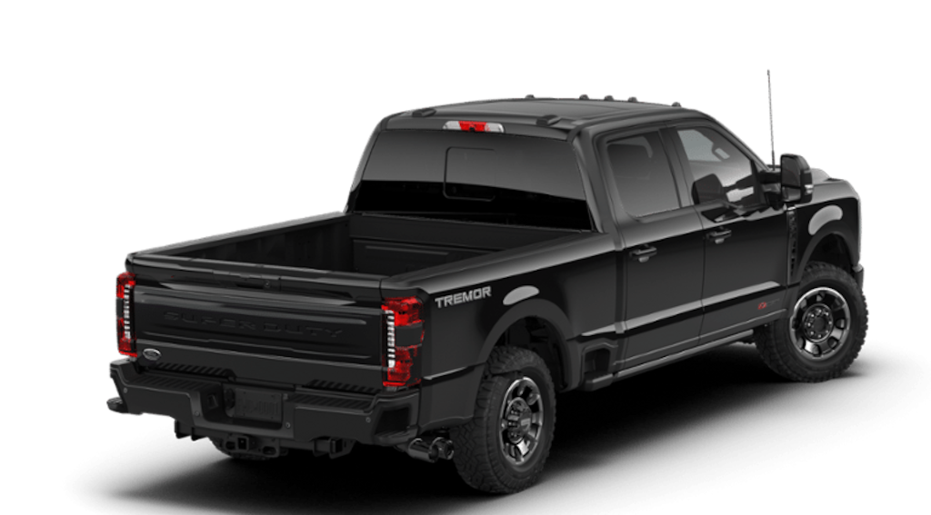 ENGINE: 6.7L HIGH OUTPUT POWER STROKE V8 DIESEL Turbo diesel B20, manual push-button engine-exhaust braking and Operator Commanded Regeneration (OCR), 250 Amp Alternator, 34 Gallon Fuel Tank, GVWR: 12,000 lb Payload Package, 3.31 Axle Ratio, Dual 68 AH AGM 750 CCA Batteries, TREMOR OFF-ROAD PACKAGE unique front springs - ride height increase, rear electronic locking differential, front limited slip differential, performance front and rear shock absorbers, unique front air dams w/approach angle improvement, transfer case and axle water fording vent tubes, rock crawl mode, trail control mode and trail turn assist, Tremor Off-Road Decal, Transfer Case & Fuel Tank Skid Plates, Tires: LT285/75R18E BSW Automatic Transmission, Off-road, LT285/75R18E BSW Spare Tire, Textured Matte Finish Off-Road Running Boards, Conventional Road Spare Wheel, Wheels: 18 Ebony Black Machined & Painted Aluminum, TWIN PANEL POWER MOONROOF map lights and moonroof switches, TOUGH BED SPRAY-IN BEDLINER tailgate-guard, black box bed tie-down hooks and black bed attachment bolts, MAX RECLINE SEATS 10-way power driver and 8-way power passenger and 4-way headrests, TRANSMISSION: TORQSHIFT 10-SPEED AUTOMATIC SelectShift and selectable drive modes: normal, eco, slippery roads, tow/haul and off-road (STD). 2026 Ford Super Duty F-350 SRW Pickup with Agate Black exterior and Black Onyx interior features a 8 Cylinder Engine with 500 HP at 2600 RPM*.