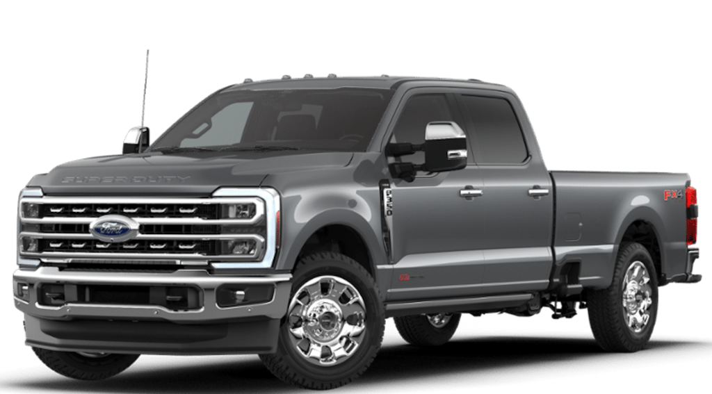 ENGINE: 6.7L HIGH OUTPUT POWER STROKE V8 DIESEL Turbo diesel B20, manual push-button engine-exhaust braking and Operator Commanded Regeneration (OCR), 48 Gallon Fuel Tank, 250 Amp Alternator, GVWR: 12,000 lb Payload Package, 3.31 Axle Ratio, Dual AGM 68 AH Battery, LARIAT ULTIMATE PACKAGE Tailgate Step & Handle, Head-Up Display, 4-Way Adjustable Headrests, Power-Deployable Running Boards, Radio: B&O Unleashed Sound System by Bang & Olufsen, HD Radio w/14 speakers including subwoofer, LARIAT PREMIUM PACKAGE Pro Trailer Hitch Assist, Ford Co-Pilot 360 Assist 2.0, rear view camera and reverse brake assist, Pre-Collision Assist, Automatic Emergency Braking (AEB), pedestrian detection, forward collision warning, dynamic brake support and intersection assist, Post-Collision Braking, Lane-Keeping System, lane-keeping alert, lane-keeping aid and driver alert, Front & Rear Parking Sensors, Automatic High Beam, Adaptive Cruise Control w/Stop-and-Go, lane centering and predictive speed assist, Power-Sliding Rear-Window w/Defrost, Pro Trailer Backup Assist, trailer reverse guidance, Lane Departure Warning, TWIN PANEL POWER MOONROOF map lights and moonroof switches, CHROME PACKAGE Unique Chrome Mirror Caps, Tires: LT275/65Rx20E BSW Automatic Transmission (4), Spare may not be the same as road tire, Wheels: 20 Chrome PVD Aluminum, Chrome Door Handles, 6 Angular Bright Anodized Step Bars, Chrome Exhaust Tip, TOUGH BED SPRAY-IN BEDLINER tailgate-guard, black box bed tie-down hooks and black bed attachment bolts, SECURICODE KEYLESS ENTRY KEYPAD (DRIVERS SIDE) Integrated into the B-pillar, ELECTRONIC-LOCKING W/3.55 AXLE RATIO, TRANSMISSION: TORQSHIFT 10-SPEED AUTOMATIC SelectShift and selectable drive modes: normal, eco, slippery roads, tow/haul and off-road. 2026 Ford Super Duty F-350 SRW Pickup with Carbonized Gray exterior and Black Onyx interior features a 8 Cylinder Engine with 500 HP at 2600 RPM*.