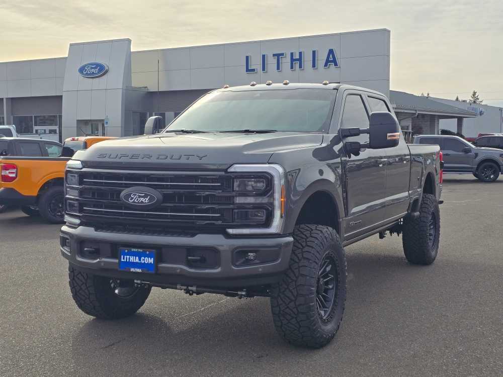 TWIN PANEL POWER MOONROOF map lights and moonroof switches, TOUGH BED SPRAY-IN BEDLINER tailgate-guard, black box bed tie-down hooks and black bed attachment bolts, ELECTRONIC-LOCKING W/3.55 AXLE RATIO, TRANSMISSION: TORQSHIFT 10-SPEED AUTOMATIC SelectShift and selectable drive modes: normal, eco, slippery roads, tow/haul and off-road (STD). 2026 Ford Super Duty F-350 SRW Pickup with Carbonized Gray Metallic exterior and Black Onyx/Platinum Blue interior features a 8 Cylinder Engine with 430 HP at 5500 RPM*. Non-Smoker vehicle Superb Condition