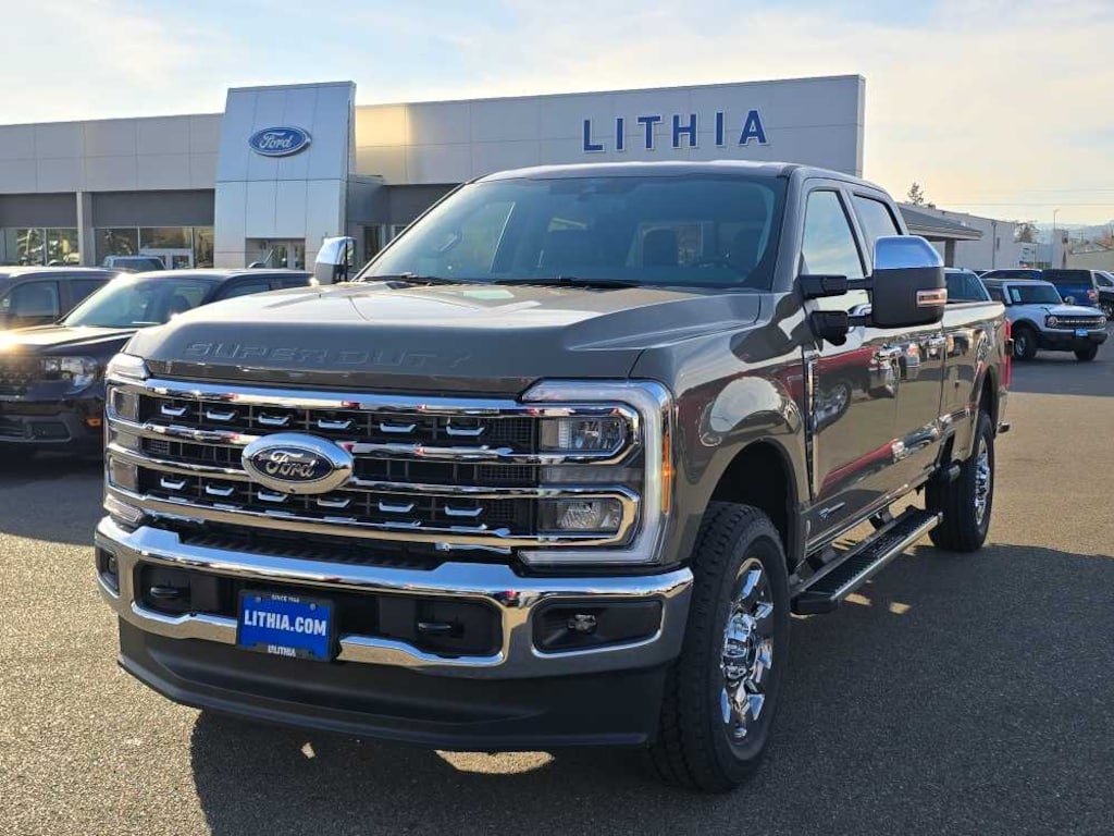 ENGINE: 6.7L 4V OHV POWER STROKE V8 TURBO DIESEL B20 manual push-button engine-exhaust braking and Operator Commanded Regeneration (OCR), 48 Gallon Fuel Tank, 250 Amp Alternator, GVWR: 12,000 lb Payload Package, 3.31 Axle Ratio, Dual AGM 68 AH Battery, CHROME PACKAGE Unique Chrome Mirror Caps, Tires: LT275/65Rx20E BSW Automatic Transmission (4), Spare may not be the same as road tire, Wheels: 20 Chrome PVD Aluminum, Chrome Door Handles, 6 Angular Bright Anodized Step Bars, Chrome Exhaust Tip, POWER-SLIDING REAR-WINDOW W/DEFROST, ELECTRONIC-LOCKING W/3.55 AXLE RATIO, TRANSMISSION: TORQSHIFT 10-SPEED AUTOMATIC SelectShift and selectable drive modes: normal, eco, slippery roads, tow/haul and off-road. 2026 Ford Super Duty F-350 SRW Pickup with Marsh Gray exterior and Black Onyx interior features a 8 Cylinder Engine with 475 HP at 2600 RPM*. Non-Smoker vehicle Superb Condition