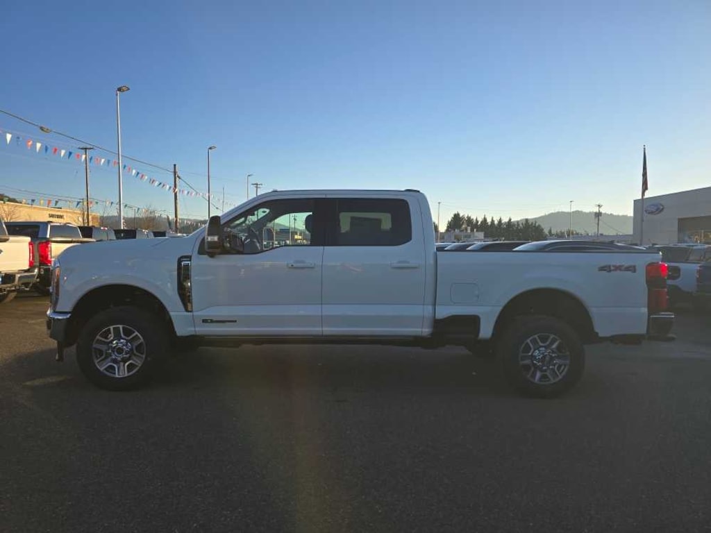 ENGINE: 6.7L 4V OHV POWER STROKE V8 TURBO DIESEL B20 manual push-button engine-exhaust braking and Operator Commanded Regeneration (OCR), 250 Amp Alternator, 34 Gallon Fuel Tank, GVWR: 11,499 lb Payload Package, 3.31 Axle Ratio, Dual AGM 68 AH Battery, LARIAT ULTIMATE PACKAGE Tailgate Step & Handle, Head-Up Display, 4-Way Adjustable Headrests, Power-Deployable Running Boards, Radio: B&O Unleashed Sound System by Bang & Olufsen, HD Radio w/14 speakers including subwoofer, LARIAT PREMIUM PACKAGE Pro Trailer Hitch Assist, Ford Co-Pilot 360 Assist 2.0, rear view camera and reverse brake assist, Pre-Collision Assist, Automatic Emergency Braking (AEB), pedestrian detection, forward collision warning, dynamic brake support and intersection assist, Post-Collision Braking, Lane-Keeping System, lane-keeping alert, lane-keeping aid and driver alert, Front & Rear Parking Sensors, Automatic High Beam, Adaptive Cruise Control w/Stop-and-Go, lane centering and predictive speed assist, Power-Sliding Rear-Window w/Defrost, Pro Trailer Backup Assist, trailer reverse guidance, Lane Departure Warning, TOUGH BED SPRAY-IN BEDLINER tailgate-guard, black box bed tie-down hooks and black bed attachment bolts, ELECTRONIC-LOCKING W/3.55 AXLE RATIO, TRANSMISSION: TORQSHIFT 10-SPEED AUTOMATIC SelectShift and selectable drive modes: normal, eco, slippery roads, tow/haul and off-road. 2026 Ford Super Duty F-350 SRW Pickup with Star White Metallic Tri-Coat exterior and Black Onyx interior features a 8 Cylinder Engine with 475 HP at 2600 RPM*. Non-Smoker vehicle Superb Condition