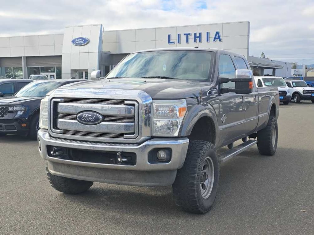6.7L 32-VALVE PWR STROKE V8 TURBO DIESEL ENGINE 750 CCA 78-AH dual batteries, intelligent oil life minder, 14K trailer hitch receiver w/2.5 trailer hitch & 2 sleeve reducer, LARIAT ULTIMATE PKG pwr sliding moonroof, pwr heated/cooled front seats w/EASY ENTRY®/exit memory feature, PowerScope trailer tow mirrors w/memory, remote start system, pwr adjustable pedals w/memory, navigation system w/satellite radio, rear view camera, tailgate step, NAVIGATION SYSTEM W/HD RADIO AM/FM stereo w/CD/MP3 player, USB port, in-dash touch screen, voice-activated controls, SIRIUS Travel Link capability, digital clock, (8) speakers, subwoofer, CHROME PKG 18 chrome clad wheels, bright metallic exhaust tip, chrome tow hooks, unique chrome mirror caps, chrome pickup bed tie-down hooks, 6 angular chrome step bars, (4) LT275/65R20E ALL-TERRAIN OWL TIRES LT275/70R18E all-terrain BSW spare, PWR SLIDING MOONROOF map lights & switches, REAR VIEW CAMERA electrochromic rearview mirror w/video, TOUGHBED SPRAY-IN BEDLINER tailgate guard, black bed attachment bolts, black tie-down hooks, 3.55 AXLE RATIO W/ELECTRONIC LOCKING REAR AXLE, UNIVERSAL GARAGE DOOR OPENER, TORQSHIFT 6-SPEED AUTOMATIC TRANSMISSION W/TOW/HAUL MODE. 2012 Ford Super Duty F-350 SRW Pickup with Sterling Gray Metallic exterior and Black interior features a 8 Cylinder Engine with 400 HP at 2800 RPM*. Non-Smoker vehicle