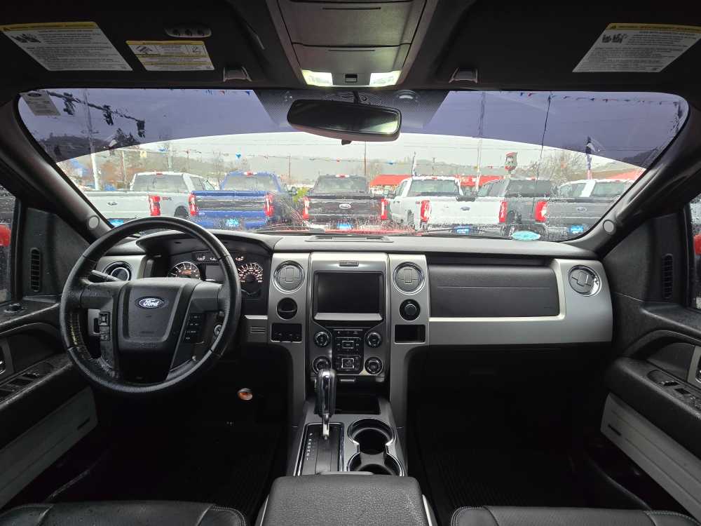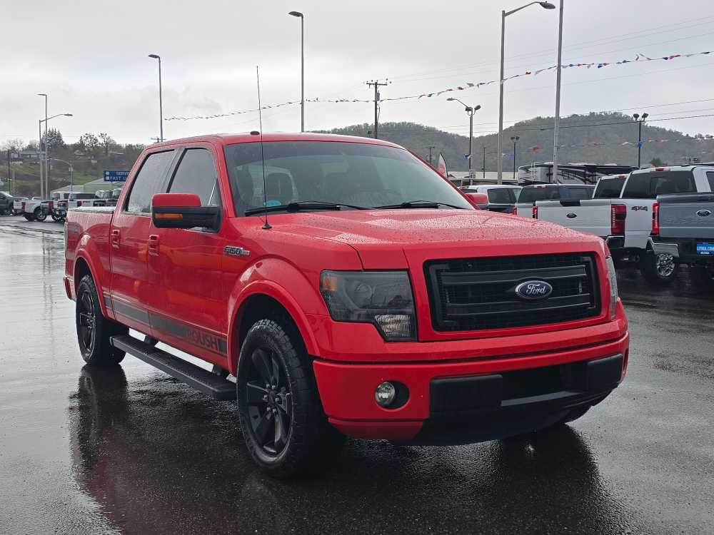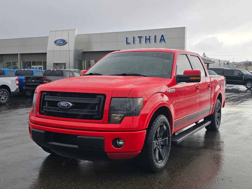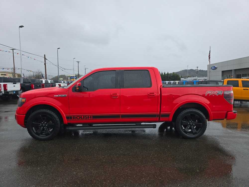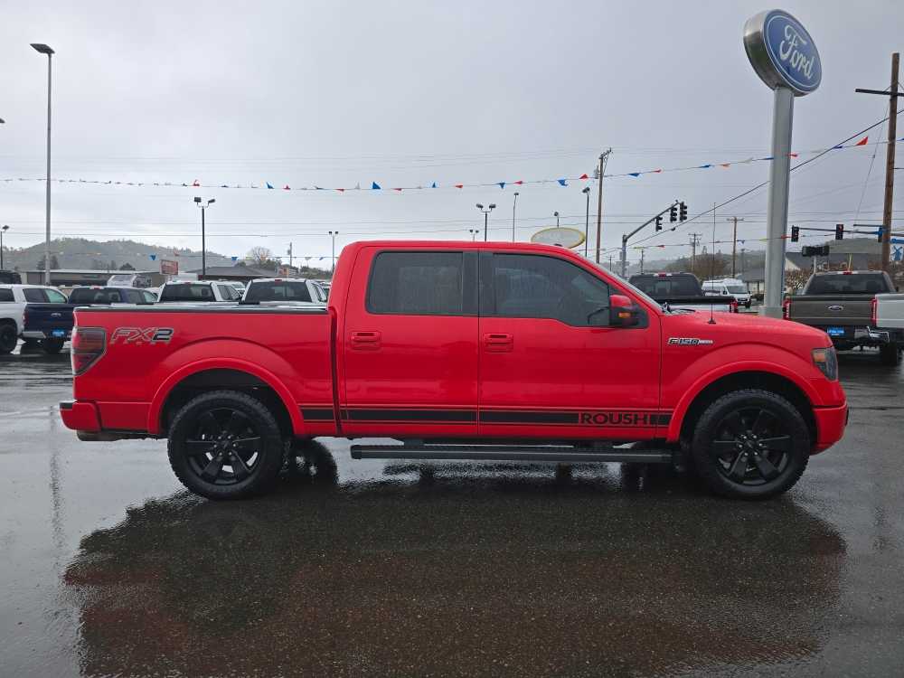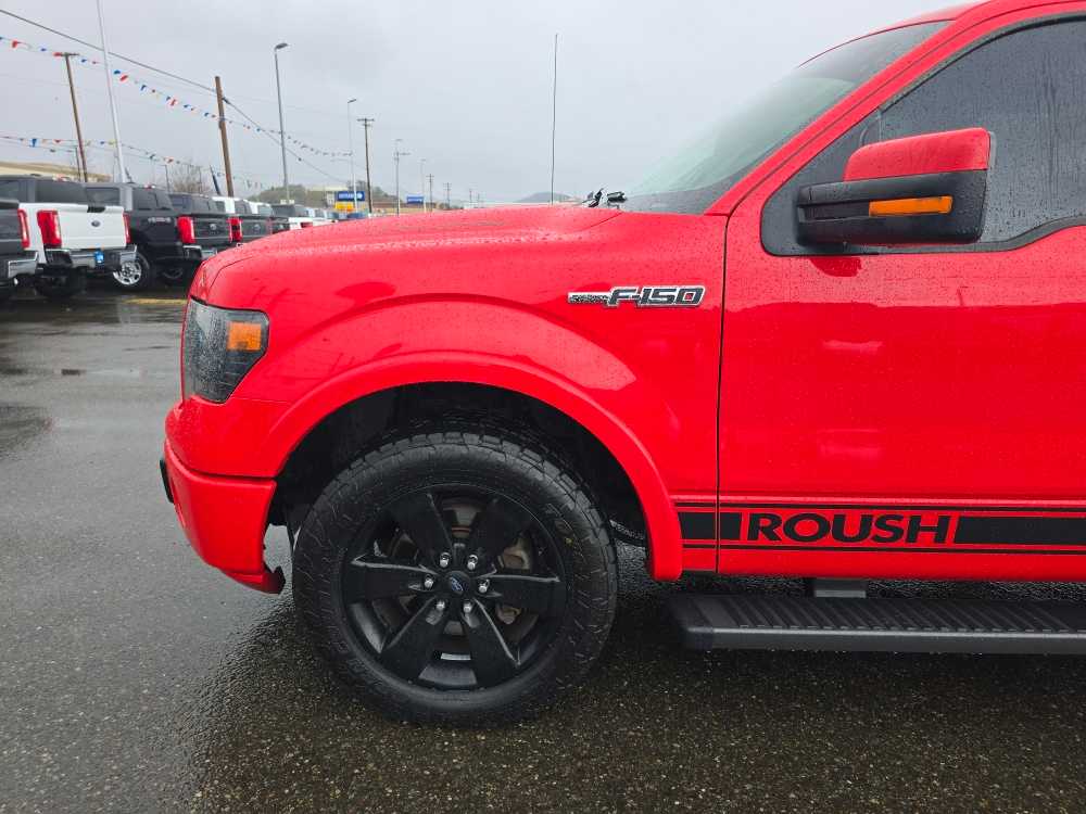 EQUIPMENT GROUP 402A LUXURY Trailer Brake Controller, Radio: Sony Single-CD w/HD, FX Luxury Package, Memory System, memory power-adjustable pedals, Reverse Sensing System, Power-Sliding Rear Window w/Defrost & Privacy Tint, Power Adjustable Pedals, Dual-Zone Electronic Automatic Temp Control (EATC), High Intensity Discharge Headlamps, SYNC w/MyFord Touch & SYNC Services, voice-activated communications and entertainment system, SYNC Services - traffic, turn-by-turn directions, business search, send to SYNC from Mapquest, news, sports, weather and horoscopes, Instrumentation includes 8 LCD touch-screen in center stack, 4.2 LCD productivity screen: includes menus for gauge setup, trip computer, fuel economy and, V8 SUPERCHARGED ROUSH EDITION, ENGINE: 5.0L V8 FFV (STD), Engine: 5.0L V8 SUPERCHARGED, ROUSH EDITION. 2014 Ford F-150 with Race Red exterior and Black interior features a 8 Cylinder Engine with 360 HP at 5500 RPM*. Non-Smoker vehicle