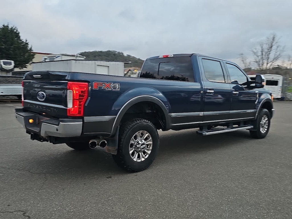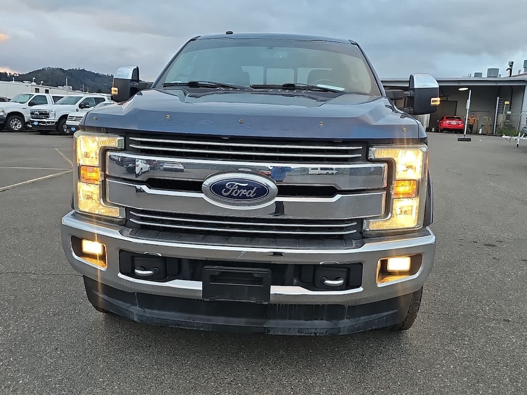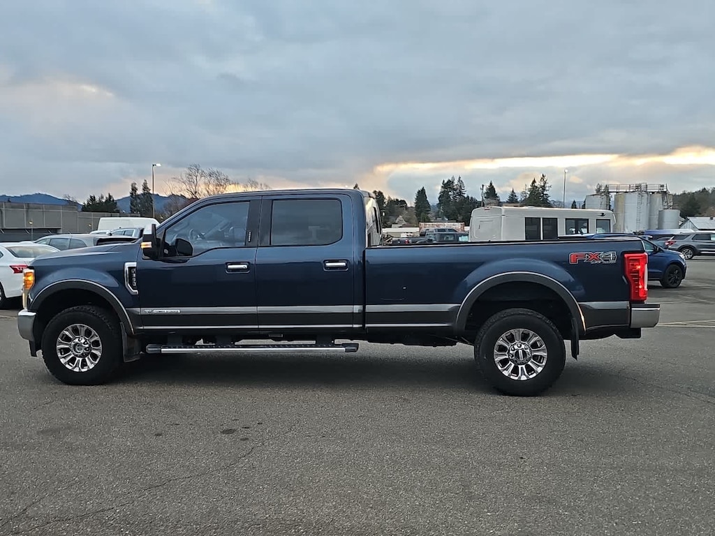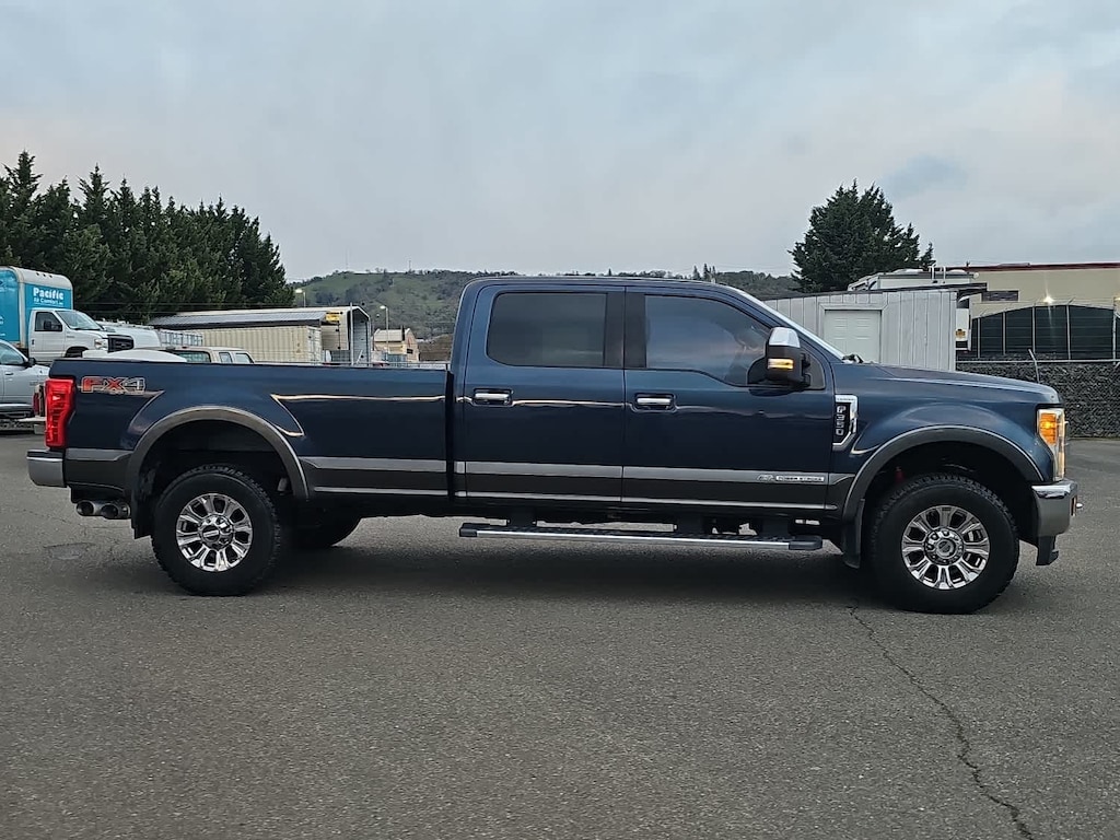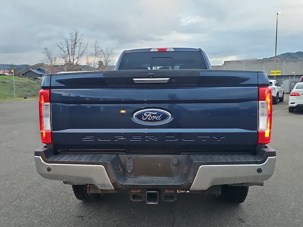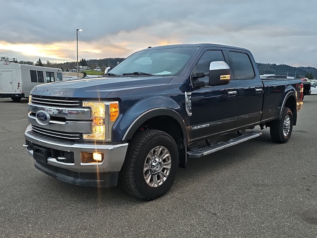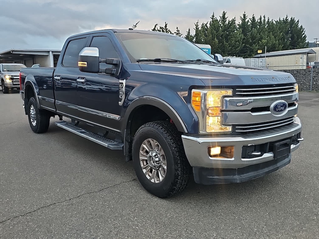 4 valve OHV, manual push-button engine-exhaust braking and intelligent oil-life monitor, 48 Gallon Fuel Tank, Extra Heavy-Duty 220 Amp Alternator, GVWR: 11,500 lb Payload Package, 3.31 Axle Ratio, Dual 78-AH 750 CCA Batteries, map lights and moonroof switches, Wheels: 18 Chrome PVD Aluminum, Body-Color Door Handles w/Chrome Insert, Unique Chrome Mirror Caps, 6 Angular Chrome Step Bars, Chrome Exhaust Tip, HD and SiriusXM Traffic and Travel Link, Note: SiriusXM Traffic and Travel Link includes a, Services are not available in Alaska and Hawaii, ELECTRONIC-LOCKING W/3.31 AXLE RATIO, TAILGATE STEP & HANDLE, LT275/70Rx18E BSW Automatic Transmission spare tire, (6R140), SelectShift. 2017 Ford Super Duty F-350 SRW Pickup with Blue Jeans/Magnetic exterior and Black interior features a 8 Cylinder Engine with 440 HP at 2800 RPM*. Non-Smoker vehicle