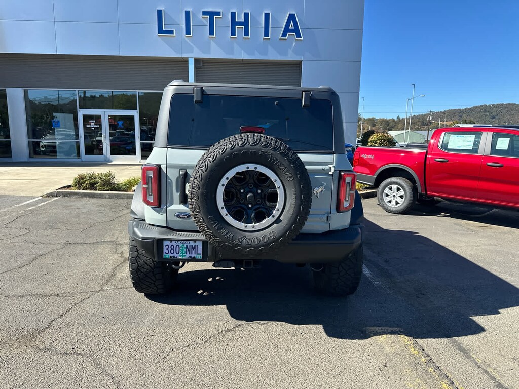 EQUIPMENT GROUP 334A LUX PACKAGE Rear Parking Sensors, Power Outlet - Back Side of Center Floor Console, Auto-Dimming Interior Rearview Mirror, Dr & Pass Illuminated Sliding Visor Vanity Mirrors, Evasive Steering Assist, Heated Steering Wheel, Additional Sound Deadening, Information on Demand Panel, Wireless Charging Pad, Dual-Zone Electronic Automatic Temperature Control, air conditioning, Ford Co-Pilot360, Enables compatibility w/FordPass performance app w/off-road navigation, Auto High-Beam Headlamps, Pre-Collision Assist w/Automatic Emergency Braking, pedestrian detection, forward collision warning and dynamic brake support, Blind Spot Information System (BLIS), Cross-Traffic Alert, Rear View Camera, backup assist grid lines, Lane-Keeping System, Lane-Keeping Alert, Lane-Keeping Aid, SASQUATCH PACKAGE Wheels: 17 Black High Gloss-Painted Aluminum, warm alloy beauty ring and beadlock capable wheels, High Clearance Fender Flares, High Clearance Suspension, 4.7 Final Drive Ratio, Tires: LT315/70R17 Mud-Terrain, Position-Sensitive Bilstein Shock Absorbers, BLACK ONYX, LEATHER-TRIMMED/VINYL BUCKET SEATS 10-way power driver seat, 8-way front passenger seat, second row armrest w/2 beverage holders and front driver/passenger seat back MOLLE strap system, Carpet flooring replaces the standard rubberized flooring, ENGINE: 2.7L ECOBOOST V6 electric brake boost, GVWR: 6,180 lbs, CARBONIZED GRAY MOLDED-IN-COLOR HARD TOP Rear-Window Defroster & Washer, Front Row Top Panels Storage Bag, For on-vehicle storage, TOWING CAPABILITY, TRANSMISSION: 10-SPEED AUTOMATIC 4.46 Axle Ratio. 2022 Ford Bronco with Cactus Gray exterior and Black Onyx interior features a V6 Cylinder Engine with 315 HP at 5500 RPM*. Non-Smoker vehicle