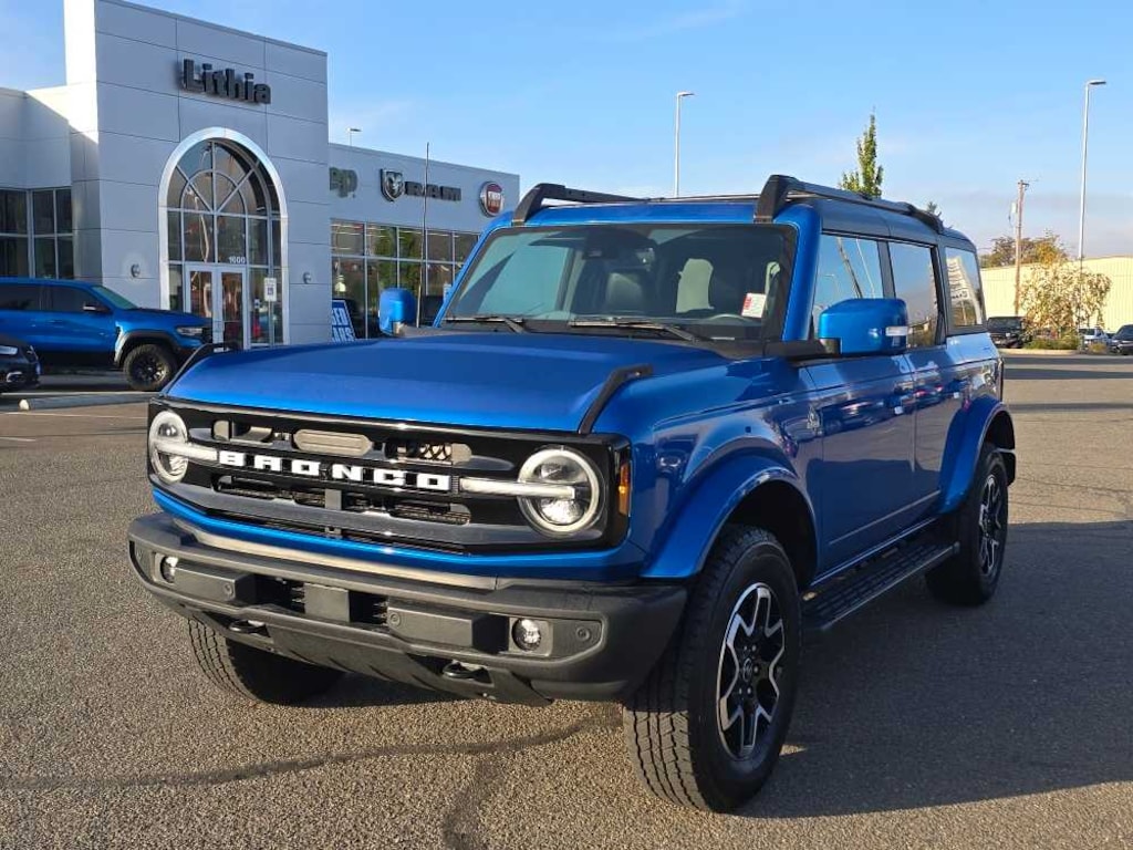 EQUIPMENT GROUP 314A HIGH/LUX PACKAGE Evasive Steering Assist, Heated Steering Wheel, Adaptive Cruise Control, Additional Sound Deadening, Information on Demand Panel, Wireless Charging Pad, Radio: B&O Sound System by Bang & Olufsen, 10 Speakers w/Subwoofer, Front Parking Sensors, 360-Degree Camera, Universal Garage Door Opener, Sideview Mirrors, LED approach lamps and LED spotlight, CARBONIZED GRAY MOLDED-IN-COLOR HARD TOP Rear-Window Defroster & Washer, Hard Top Sound Deadening Headliner, Front Row Top Panels Storage Bag, For on-vehicle storage, BLACK ROOF RAILS W/CROSSBARS Custom accessory, pre-installed, May reduce SiriusXM satellite radio reception performance, FRONT & REAR FLOOR LINERS W/O CARPET FLOOR MATS Custom accessory, pre-installed, Deletes standard carpet front and rear floor mats, TRANSMISSION: 10-SPEED AUTOMATIC trail control and trail turn assist (STD). Ford Outer Banks with Velocity Blue Metallic exterior and Roast w/Black Onyx interior features a 4 Cylinder Engine with 275 HP at 5700 RPM*.
