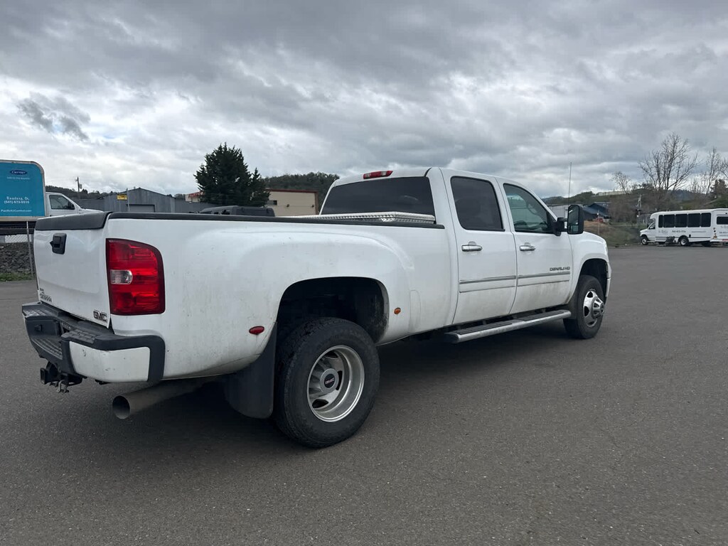 ENGINE, DURAMAX 6.6L TURBO DIESEL V8, B20-DIESEL COMPATIBLE (397 hp [296.0 kW] @ 3000 rpm, 765 lb-ft of torque [1032.8 N-m] @ 1600 rpm), AUDIO SYSTEM WITH NAVIGATION, AM/FM STEREO WITH MP3 COMPATIBLE CD/DVD PLAYER AND NAVIGATION seek-and-scan, digital clock, auto-tone control, Radio data System, (RDS) speed-compensated volume, TheftLock and USB port, ENTERTAINMENT PACKAGE, REAR SEAT DVD PLAYER with LCD display, 2 sets of wireless headphones and A/V remote control, TRANSMISSION, ALLISON 1000 6-SPEED AUTOMATIC, ELECTRONICALLY CONTROLLED with overdrive, electronic engine grade braking and tow/haul mode, LPO, ASSIST STEPS, CHROMED TUBULAR, 6 OVAL, SEATS, HEATED AND COOLED, SEAT CUSHION AND SEAT BACK FOR DRIVER AND FRONT PASSENGER with 4-way lumbar, WHEELS, 17 (43.2 CM) FORGED POLISHED ALUMINUM includes steel spare wheel (spare wheel will not cosmetically match the other 6 wheels), REARVIEW CAMERA SYSTEM, STEERING WHEEL, HEATED, LEATHER-WRAPPED AND COLOR-KEYED with theft-deterrent locking feature, GVWR, 13,000 LBS. (5897 KG) with dual rear wheels, AUDIO SYSTEM CONTROLS, REAR with 2 headphone jacks (headphones not included), power outlet and controls for volume, station selection and media. 2011 GMC Sierra 3500HD Denali with Summit White exterior and Ebony interior features a 8 Cylinder Engine with 397 HP at 3000 RPM*. Non-Smoker vehicle