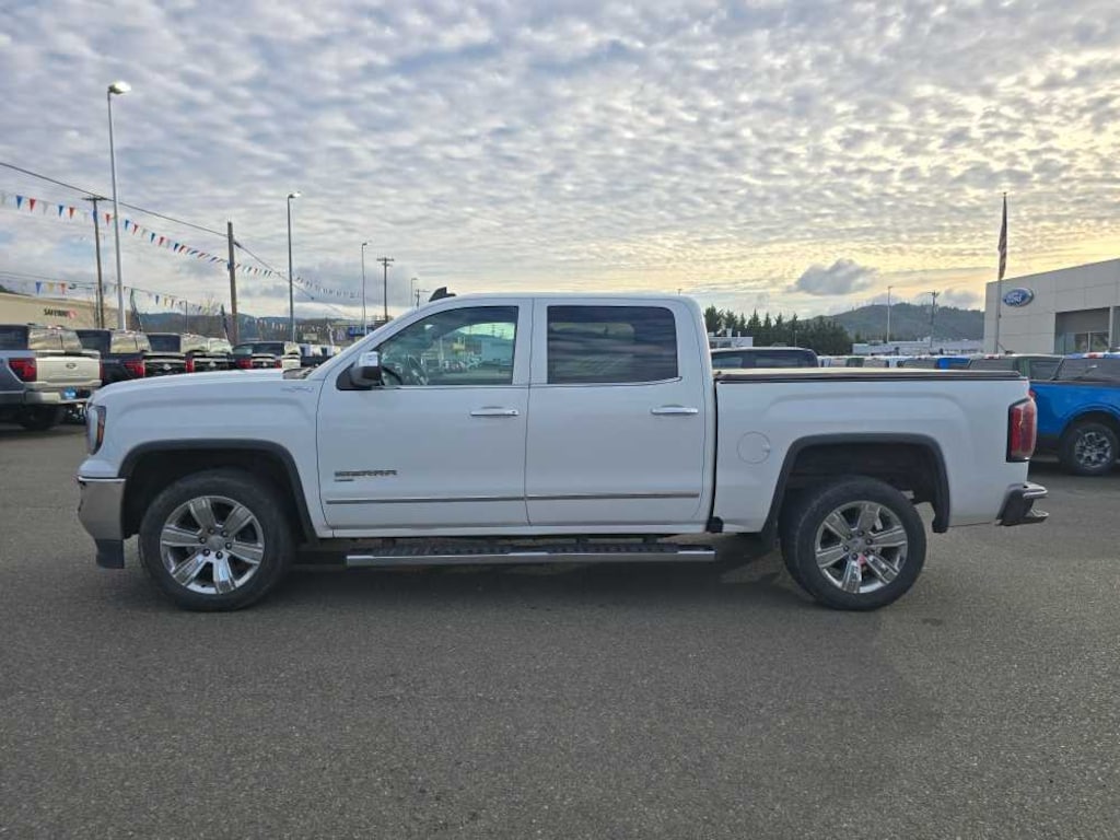 SLT CREW CAB PREMIUM PLUS PACKAGE Includes (NZP) 20 chrome clad wheels, (QSS) P275/55R20 all-season, blackwall tires, (UD5) Front and Rear Park Assist, (UVD) heated steering wheel, (A48) power sliding rear window, (BVQ) 6 rectangular chrome tubular assist steps, (UQA) Bose premium audio system, (IO6) GMC Infotainment 8 Diagonal Color Touch audio system with Navigation, (JL1) trailer brake controller, (Y86) Enhanced Driver Alert Package, (AN3) front bucket seats, (KQV) heated and vented seating, (CGN) spray-on bed liner and (T4L) full LED headlamps. ENHANCED DRIVER ALERT PACKAGE includes (UHX) Lane Keep Assist, (TQ5) IntelliBeam headlamps, (UHY) Low Speed Collision Mitigation Braking, (UD5) Front and Rear Park Assist and (UEU) Forward Collision Alert, Safety Alert Seat, SEATING, HEATED AND VENTILATED PERFORATED LEATHER-APPOINTED FRONT BUCKET, SEATS, FRONT FULL-FEATURE LEATHER-APPOINTED BUCKET with (KA1) heated seat cushions and seat backs. Includes 10-way power driver and front passenger seat adjusters, including 2-way power lumbar control, 2-position driver memory, adjustable head restraints, (D07) floor console and storage pockets. (Includes (K4C) wireless charging. AUDIO SYSTEM, 8 DIAGONAL COLOR TOUCH SCREEN NAVIGATION WITH GMC INFOTAINMENT SYSTEM, AM/FM/SIRIUSXM, HD RADIO with USB ports, auxiliary jack, Bluetooth® streaming audio for music and most phones, Pandora Internet radio and voice-activated technology for radio and phone, TRANSMISSION, 8-SPEED AUTOMATIC EASSIST, STEERING WHEEL, HEATED, LEATHER WRAPPED with audio and cruise controls. 2018 GMC Sierra 1500 with Summit White exterior and Jet Black interior features a 8 Cylinder Engine with 355 HP at 5600 RPM*. Non-Smoker vehicle