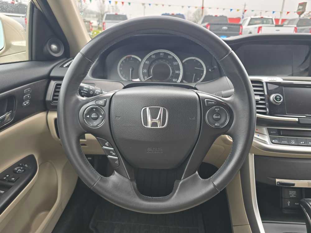 Leather Seats, Sunroof, Heated Driver Seat, Back-Up Camera, Premium Sound System, Satellite Radio, iPod/MP3 Input, Bluetooth®, Aluminum Wheels, Keyless Start, Dual Zone A/C, Smart Device Integration, Heated Seats, Heated Leather Seats MP3 Player, Keyless Entry, Remote Trunk Release, Steering Wheel Controls, Child Safety Locks. 2015 Honda Accord with Champagne Frost Pearl exterior and Ivory interior features a 4 Cylinder Engine with 185 HP at 6400 RPM*. Non-Smoker vehicle