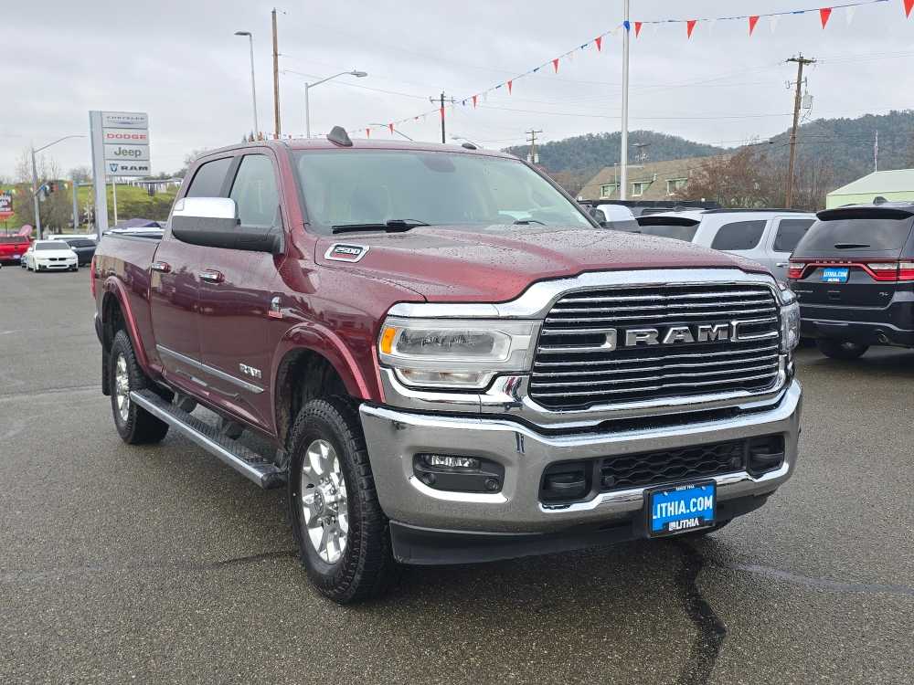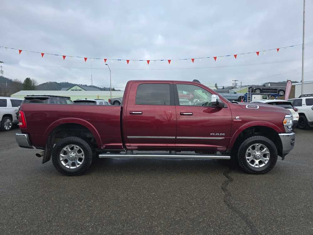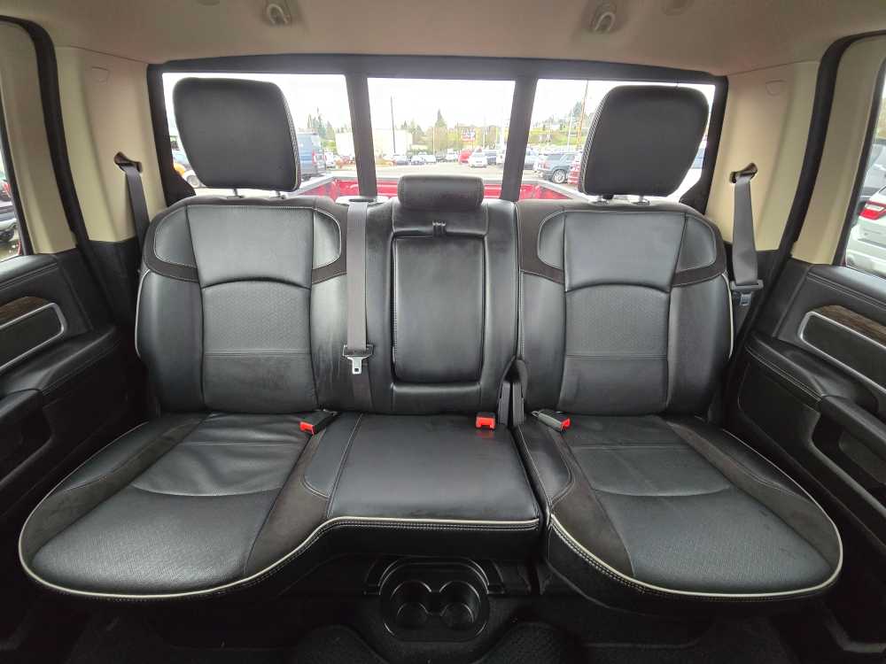 ENGINE: 6.7L I6 CUMMINS TURBO DIESEL Selective Catalytic Reduction (Urea), Dual 730 Amp Maintenance Free Batteries, Cummins Turbo Diesel Badge, Heavy Duty Engine Cooling, Supplemental Heater, 220 Amp Alternator, Tow Hooks, Diesel Exhaust Brake, Front Bumper Sight Shields, Capless Fuel Fill w/o Discriminator, LARAMIE LEVEL 1 EQUIPMENT GROUP Remote Tailgate Release, Auto High Beam Headlamp Control, Blind Spot & Cross Path Detection, Power Chrome Tow Mirrors w/Convex Spotter & Memory, Mirror-Mounted Aux Reverse Lamps, Exterior Mirrors w/Memory, Power Adjustable Convex Aux Mirrors, Rain Sensitive Windshield Wipers, Power Adjustable Pedals w/Memory, Foam Bottle Insert (Door Trim Panel), 2nd Row In Floor Storage Bins, Radio/Driver Seat/Mirrors/Pedals Memory, Ventilated Front Seats, RADIO: UCONNECT 4C NAV W/8.4 DISPLAY SiriusXM Traffic Plus, Disassociated Touchscreen Display, HD Radio, For Details Visit DriveUconnect.com, 1-Year SiriusXM Guardian Trial, GPS Navigation, SiriusXM Travel Link, ANTI-SPIN DIFFERENTIAL REAR AXLE, TRANSMISSION: 6-SPEED AUTOMATIC (68RFE) Chrome Accent Shift Control. Ram Laramie with Delmonico Red Pearlcoat exterior and Black interior features a Straight 6 Cylinder Engine with 370 HP at 2800 RPM*.
