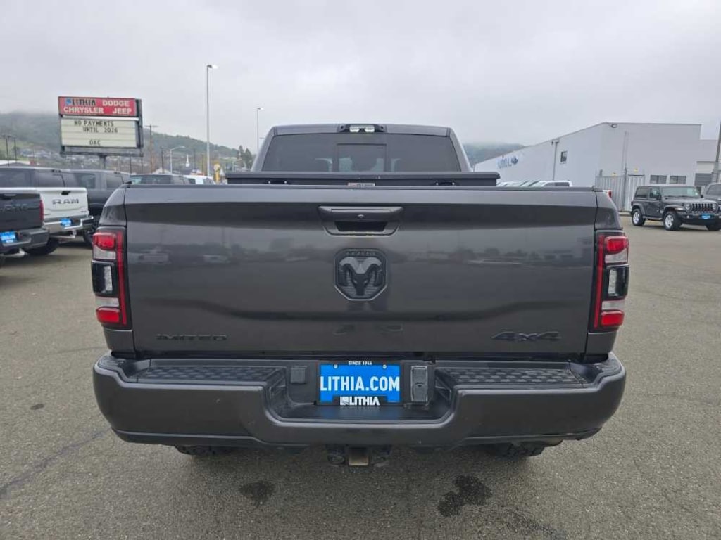 ENGINE: 6.7L I6 CUMMINS TURBO DIESEL Selective Catalytic Reduction (Urea), Dual 730 Amp Maintenance Free Batteries, Cummins Turbo Diesel Badge, Heavy Duty Engine Cooling, Supplemental Heater, 220 Amp Alternator, Diesel Exhaust Brake, Front Bumper Sight Shields, Capless Fuel Fill w/o Discriminator, Distribution Services Tracking, LIMITED LEVEL 1 EQUIPMENT GROUP 17 Speaker harman/kardon Premium Sound, CTR Stop Lamp w/Cargo View Camera, Surround View Camera System, Adaptive Cruise Control w/Stop, Trailer Reverse Guidance, Digital Rearview Mirror, Adaptive Steering System, Full Speed Forward Collision Warning Plus, Lane Keep Assist, NIGHT EDITION Black Ram Head Tailgate Badge, Black Headlamp Bezels, Body Color Door Handles, Black Wheel Center Hub, Painted Front Bumper, Painted Rear Bumper, Black Exterior Truck Badging, Tow Hooks, Body Color Grille Surround, Black Exterior Mirrors, Black Grille Limited, Wheels: 20 x 8.0 Cast Aluminum Black, Black Tail Lamp Bezels, Power Black Tow Mirrors w/Convex Spotter & Memory, ANTI-SPIN DIFFERENTIAL REAR AXLE, TRANSMISSION: 6-SPEED AUTOMATIC (68RFE) Leather Wrapped Shift Control. Ram Limited with Granite Crystal Metallic Clearcoat exterior and Black interior features a Straight 6 Cylinder Engine with 370 HP at 2800 RPM*.